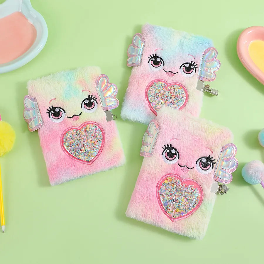 Cute Cartoon Plush Notebook With Lock For Students A5 Size Smiley Face Design Girls Big Eyes Holiday Gift Book
