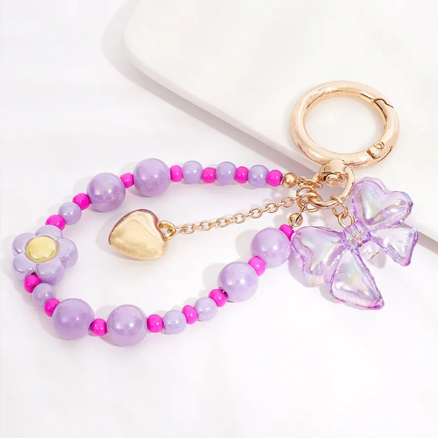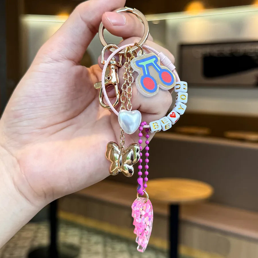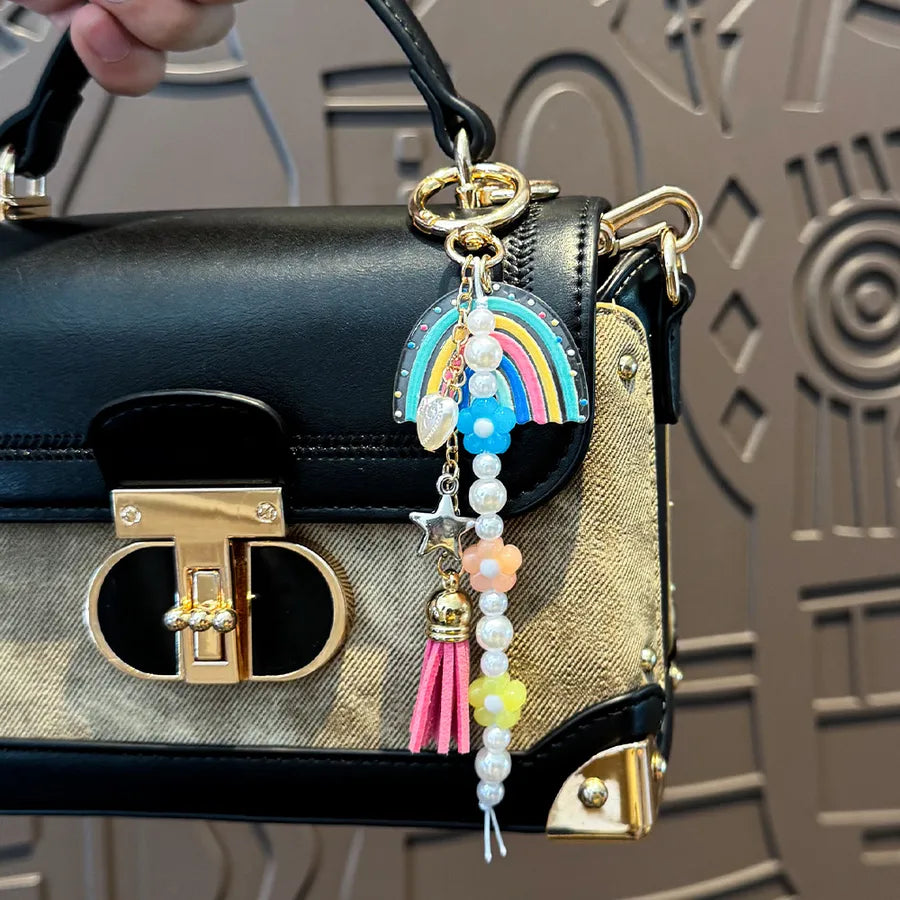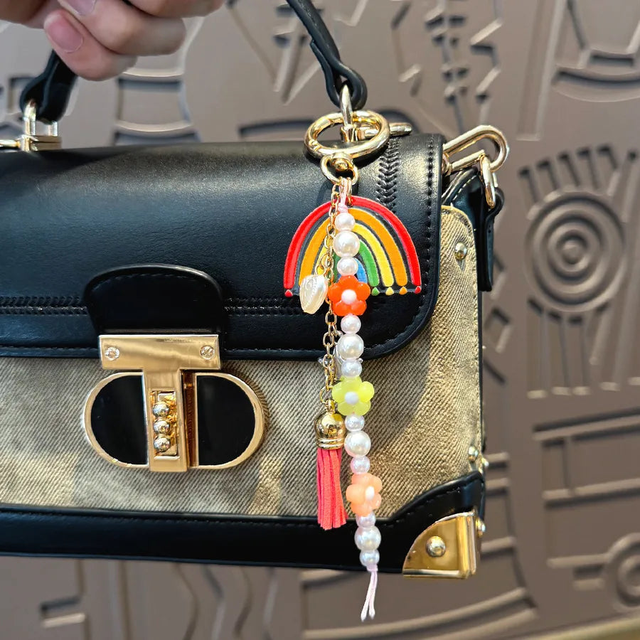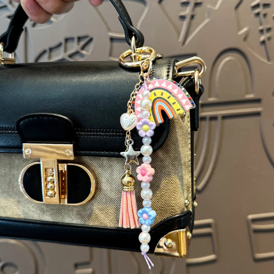Cute Metal Keychain Pendant Beaded Bookbag Girl's Bag Charm Style Cartoon Design Half Handmade Flower