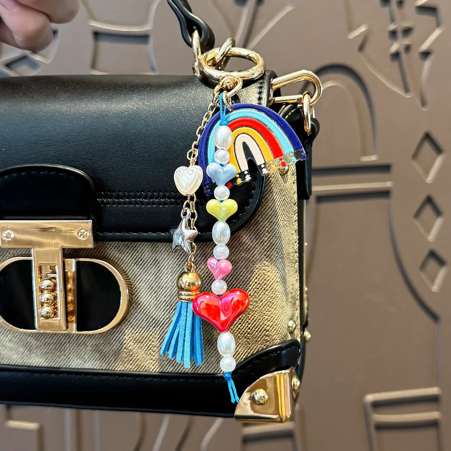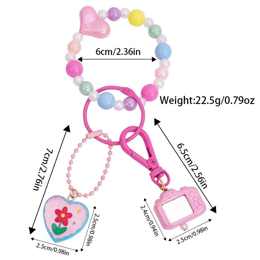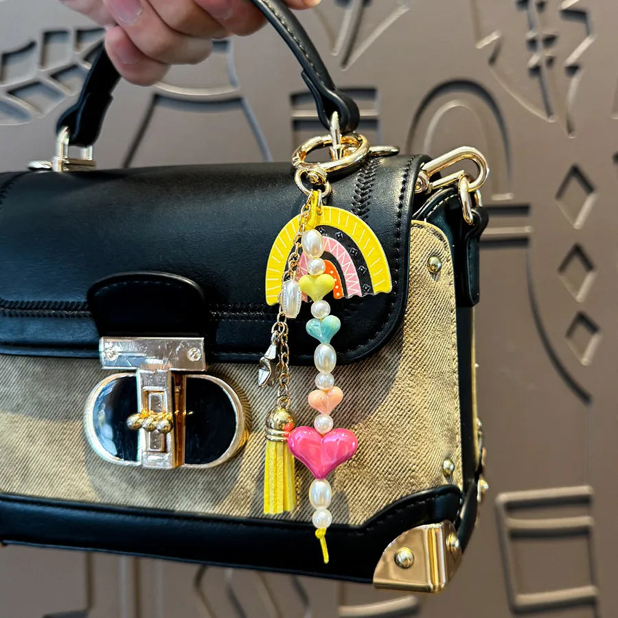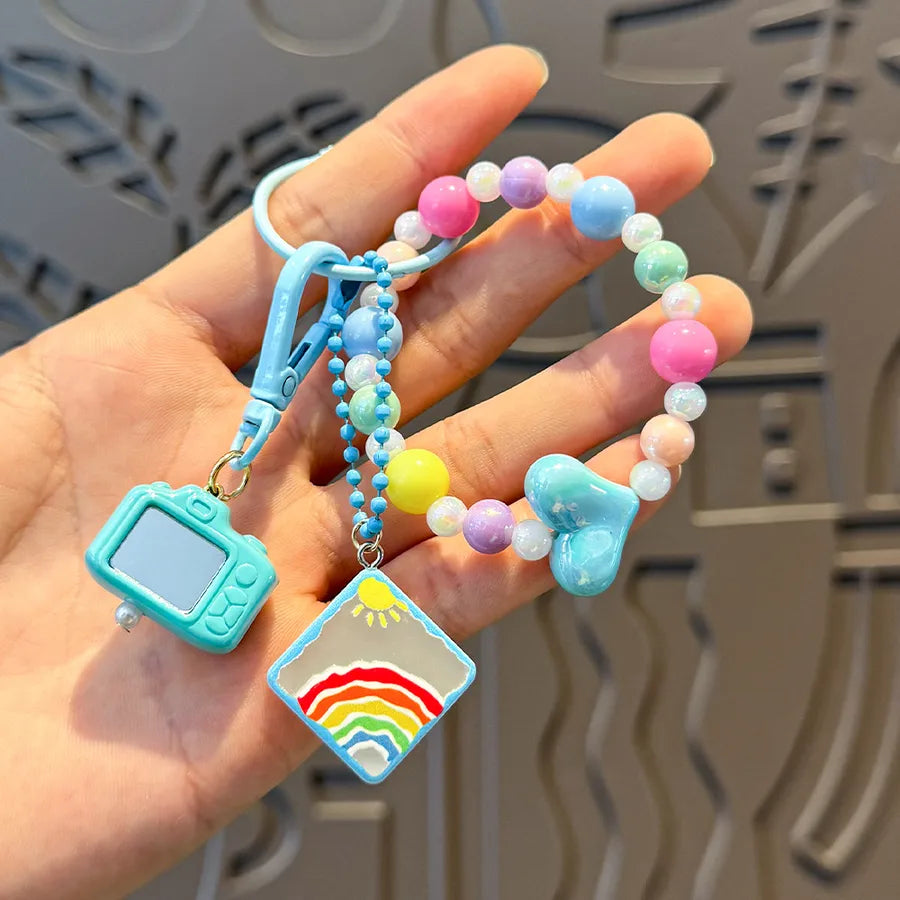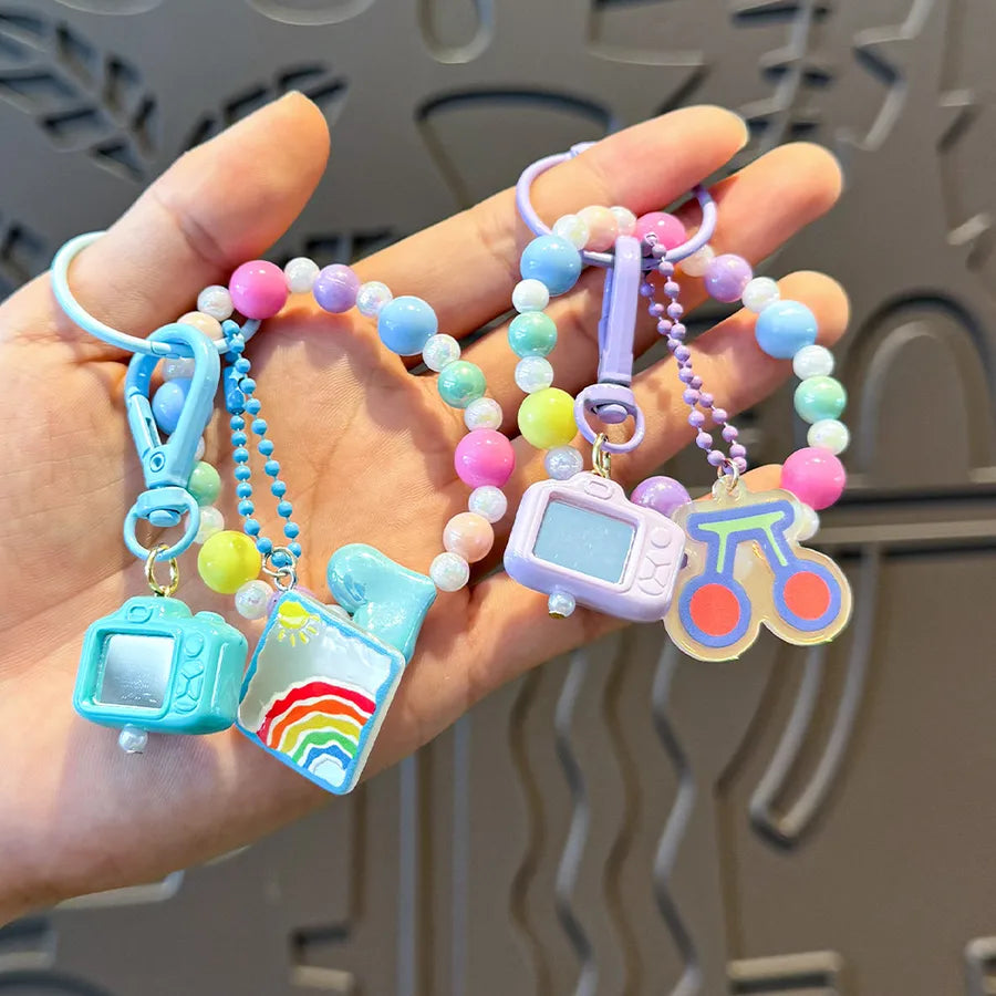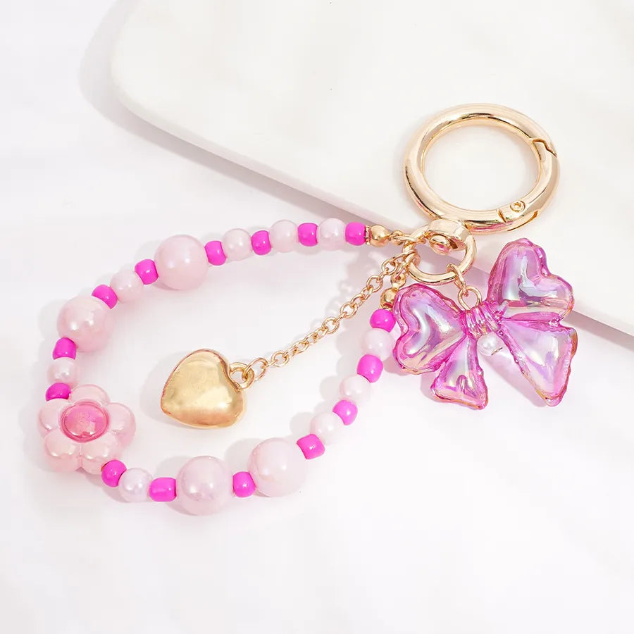 Cute Metal Keychain Pendant Beaded Bookbag Girl's Bag Charm Style Cartoon Design Half Handmade Flower