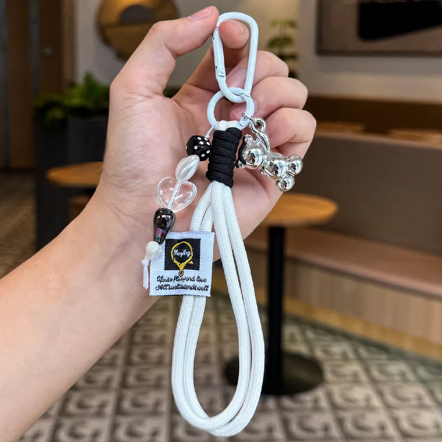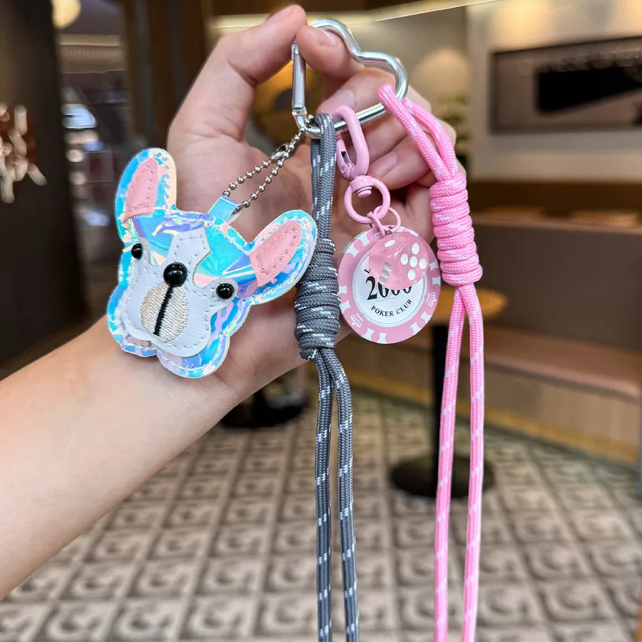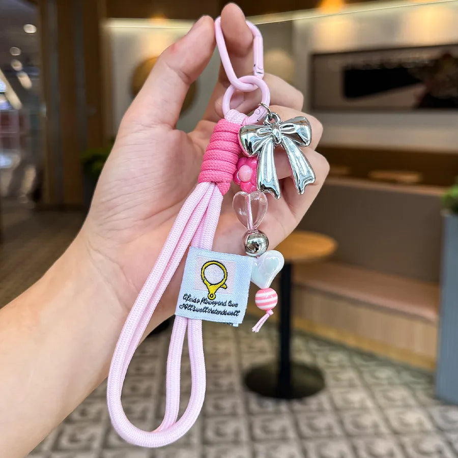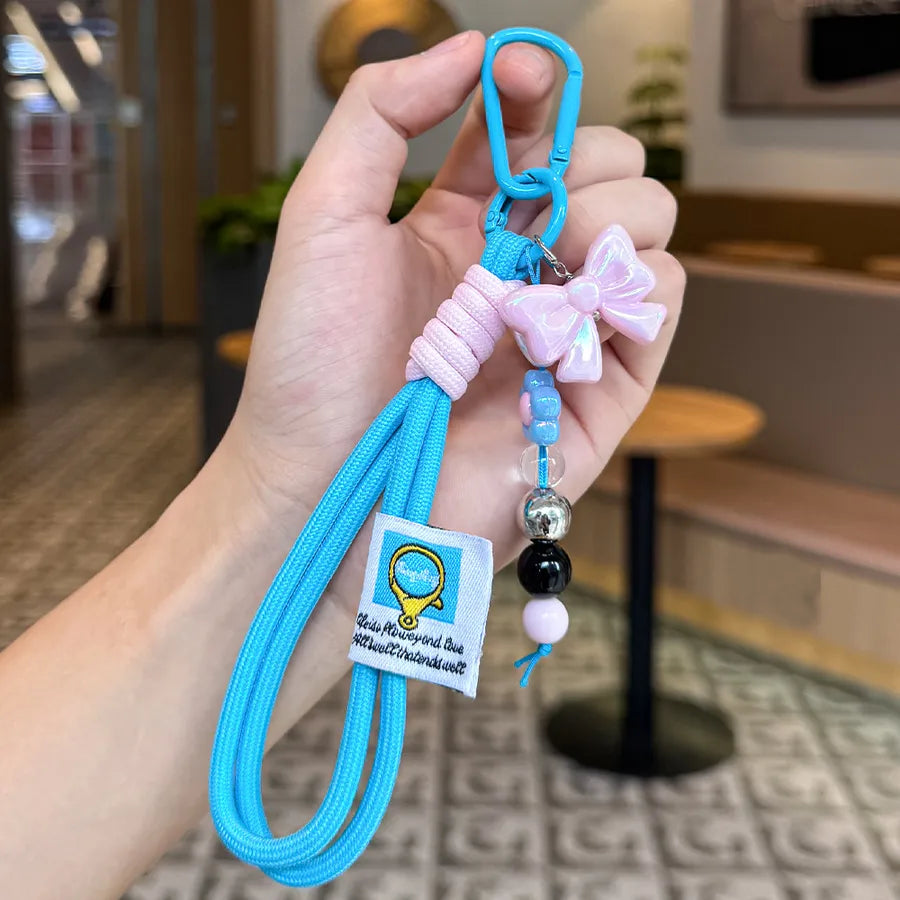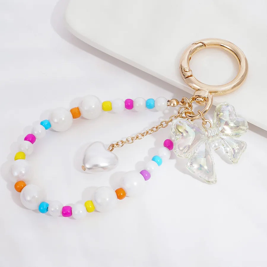 Cute Metal Keychain Pendant Beaded Bookbag Girl's Bag Charm Style Cartoon Design Half Handmade Flower