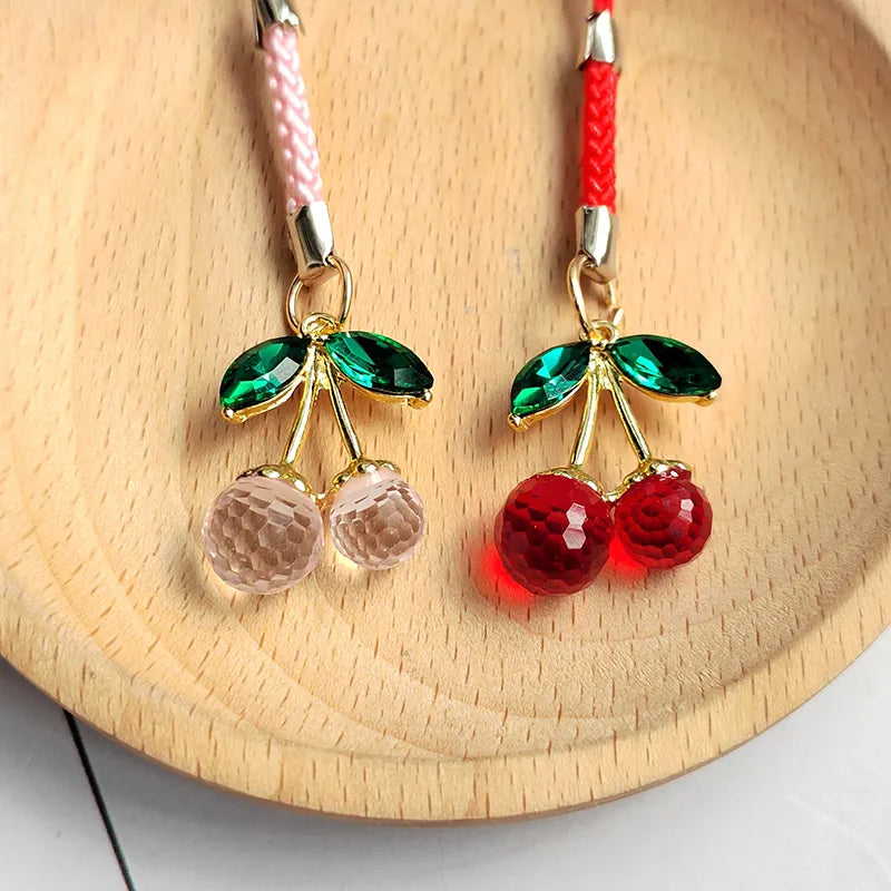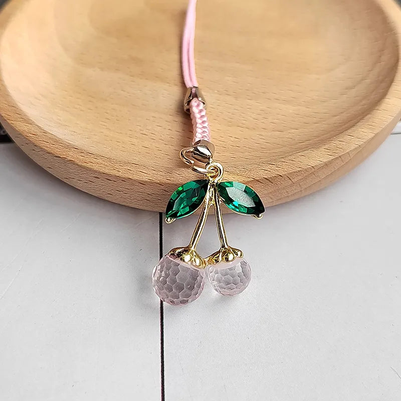Cute Sweet Cherry Alloy Glass Bag Pendant Mobile Phone Chain