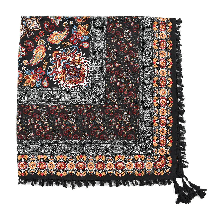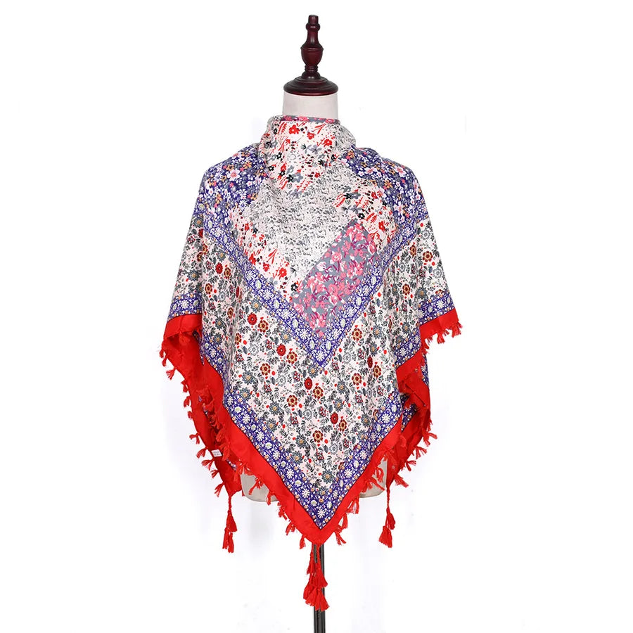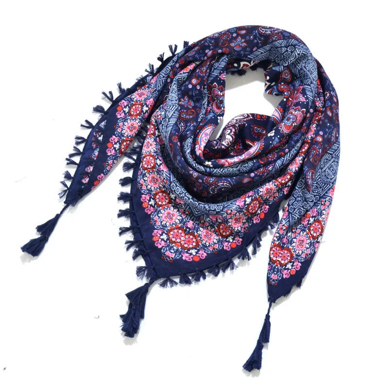 designed Bohemian Women Scarf Ethnic Style Knot Tassel Scarf Jacquard Large Square