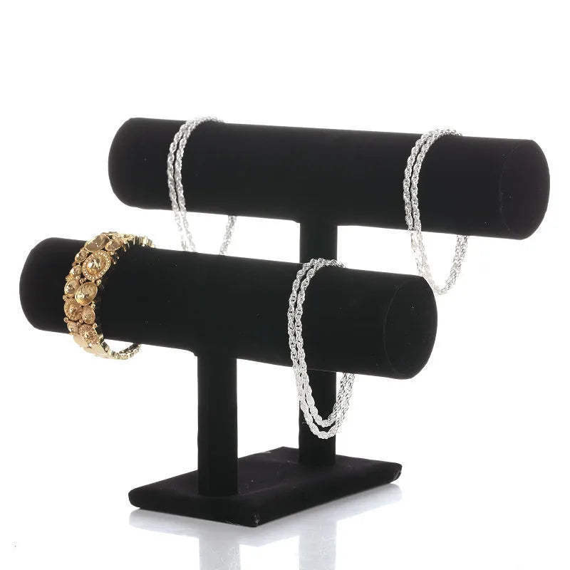 Double Layer Bracelet Display Stand Jewelry Watch Earring Hair Band Showcase Counter Top Velvet Stand For Jewelry Store