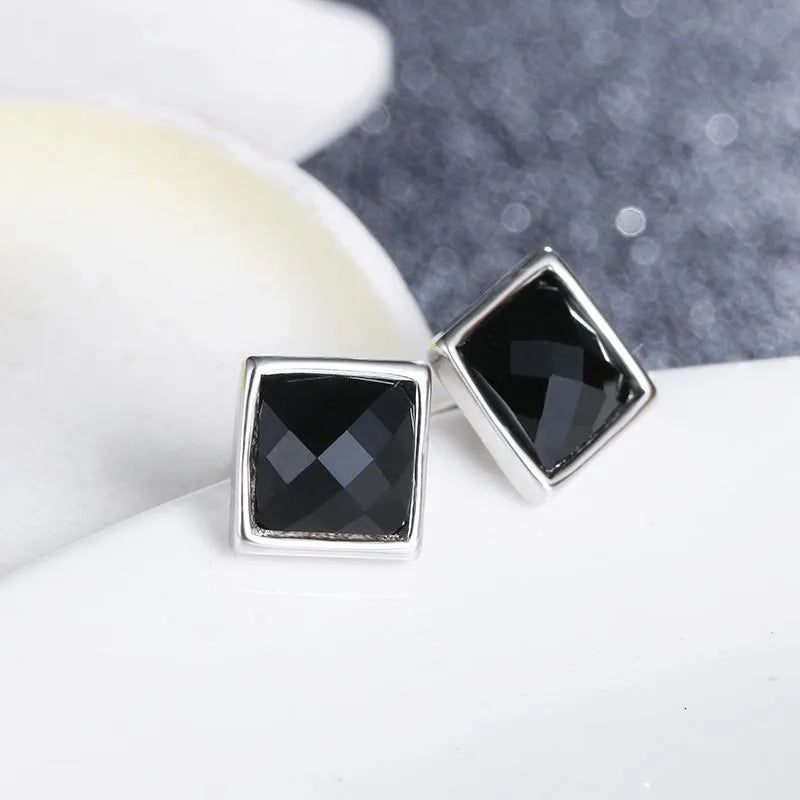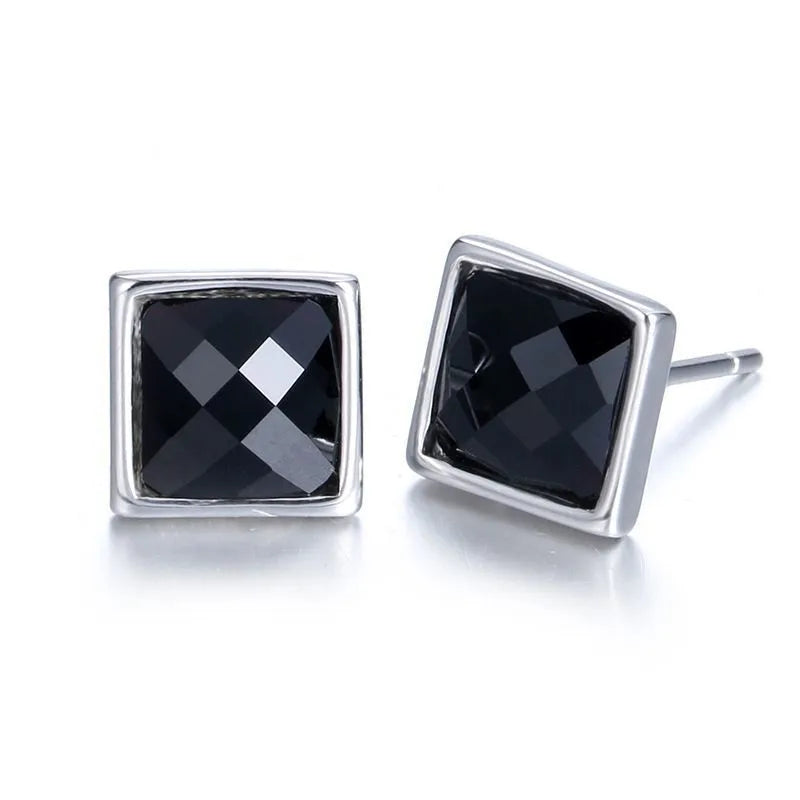 Earrings for Men High-End Ins Trend Black Three-Dimensional Cut Personality Accessories Single Square Men's Earrings
