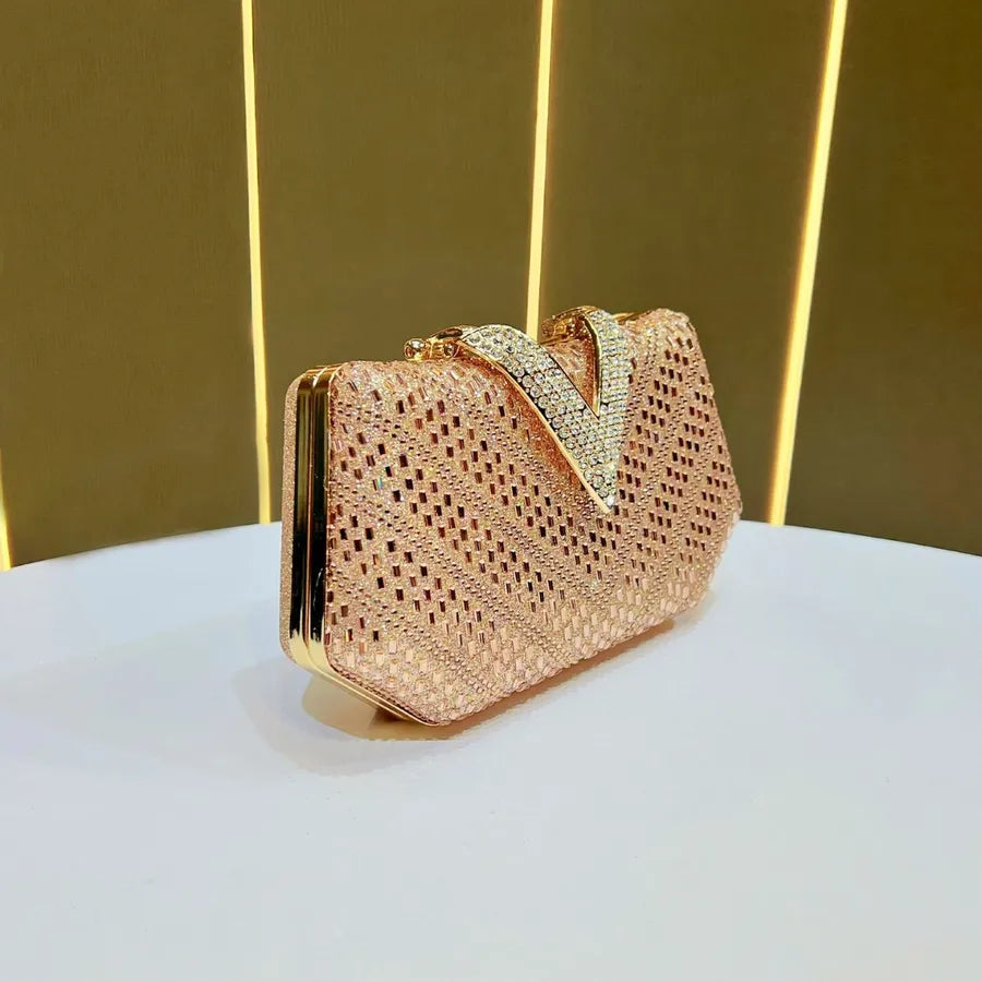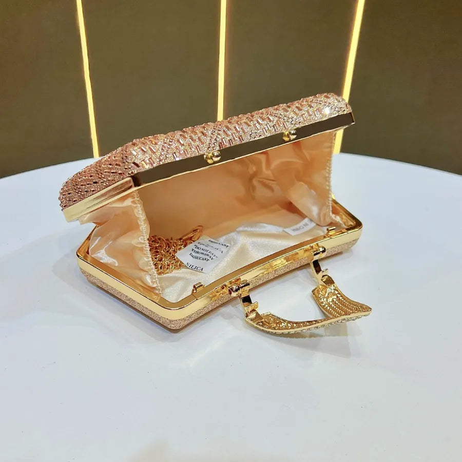 Elegant Diamond Embellished Evening Bag Women's Clutch Chain Crossbody Flag Dress Bag Handbag Single Shoulder Party Purse