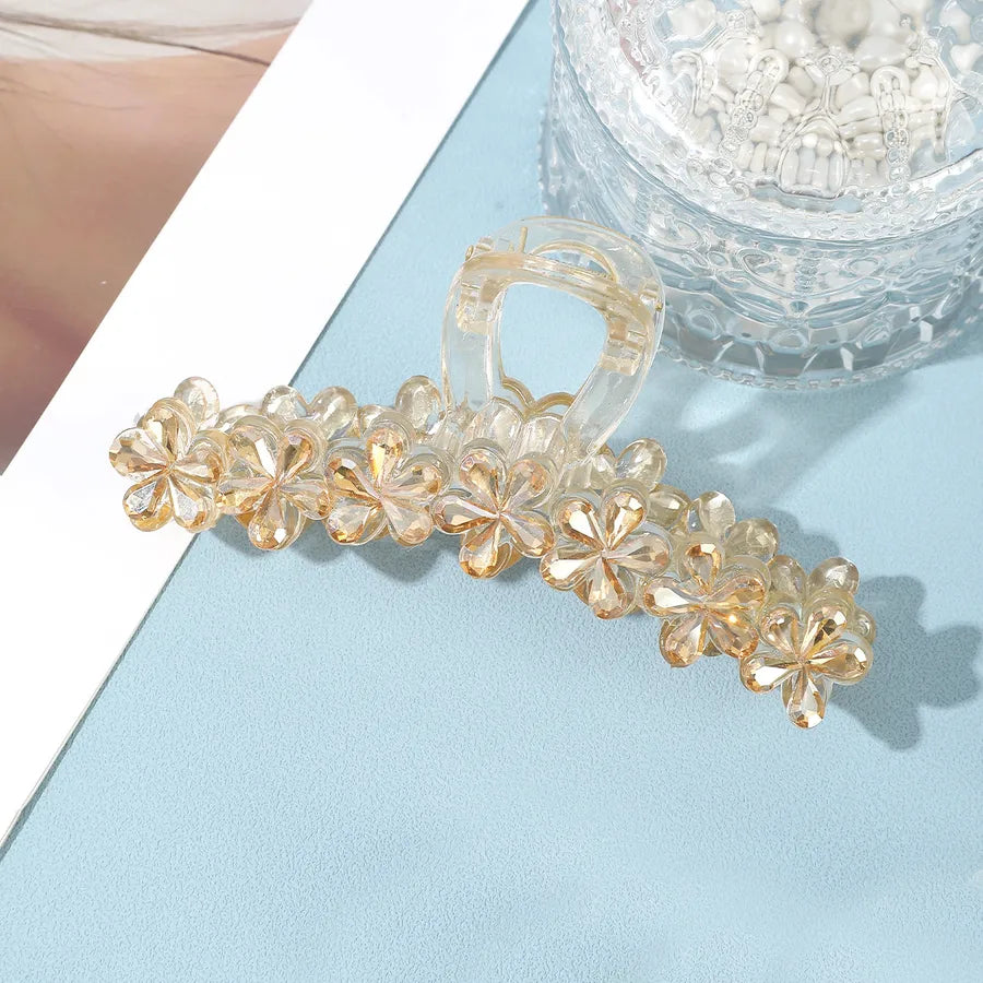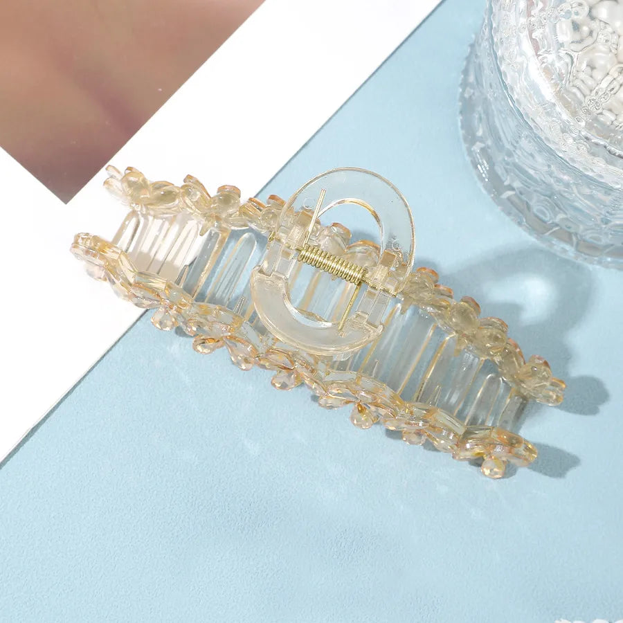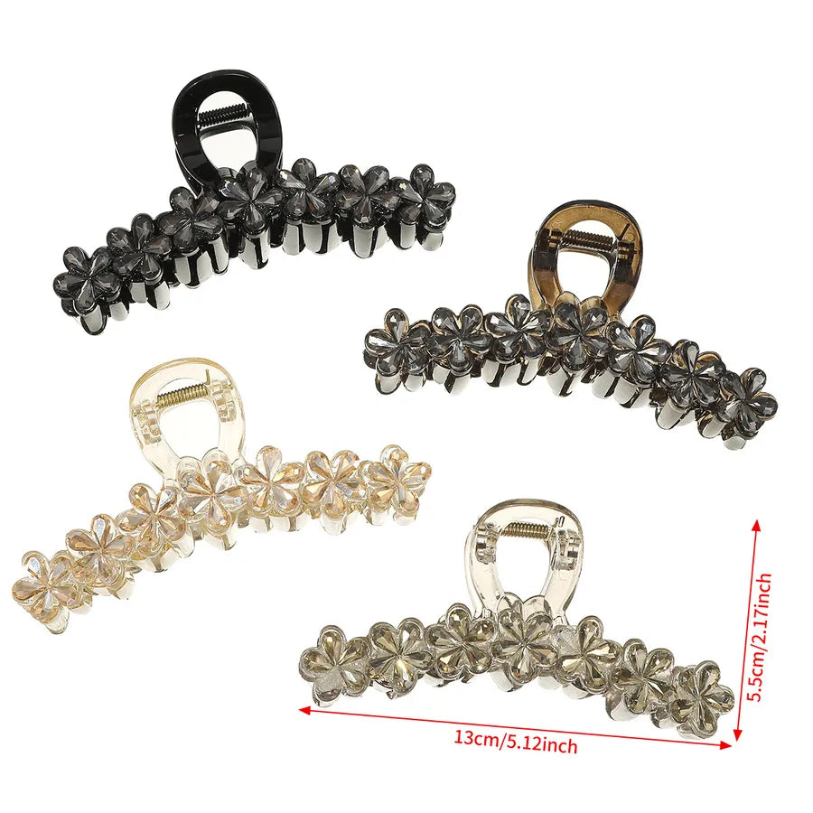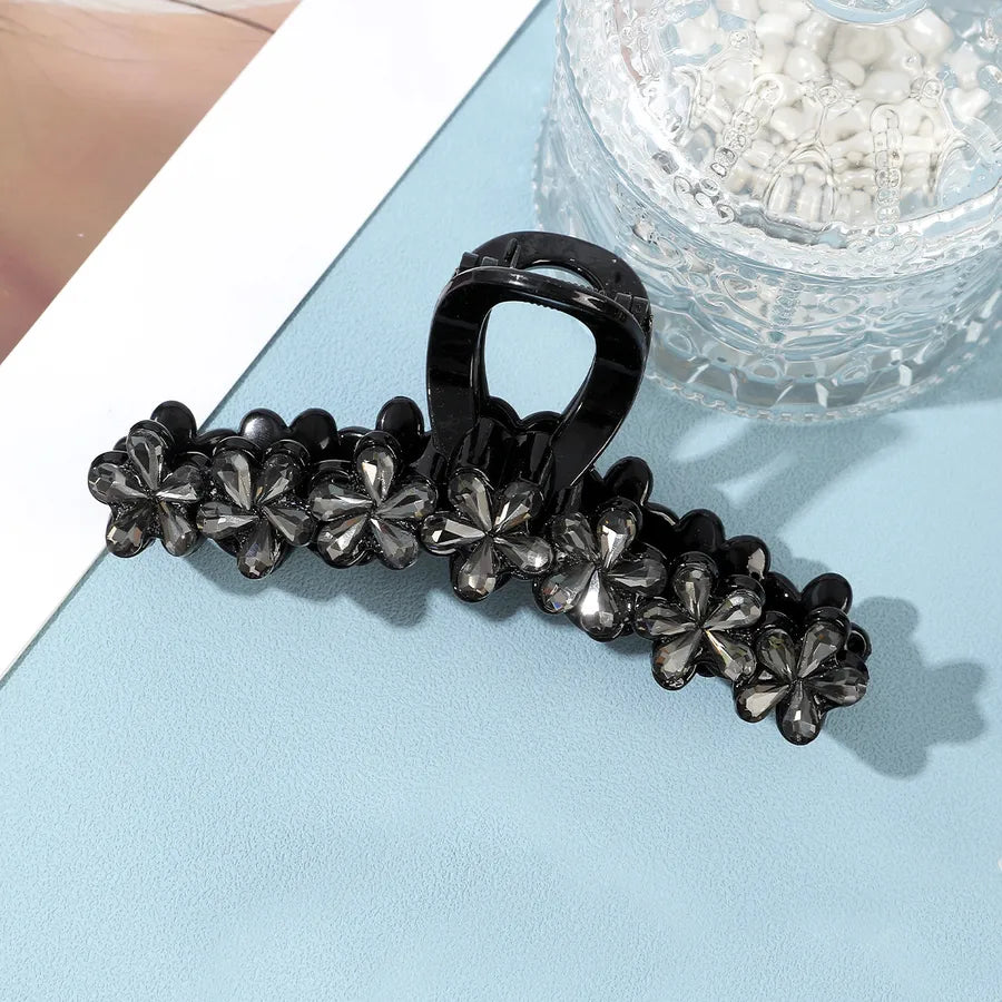 Elegant Floral Hair Claw Clip Style Resin Diamond Shark Clamp For Women Hair Accessories Hairdo Holder