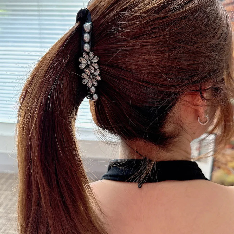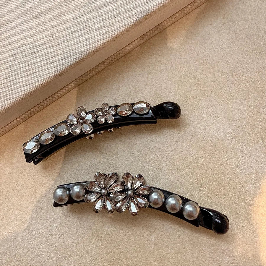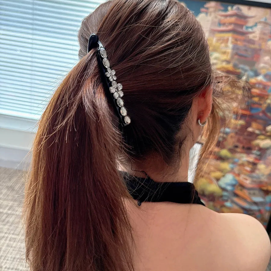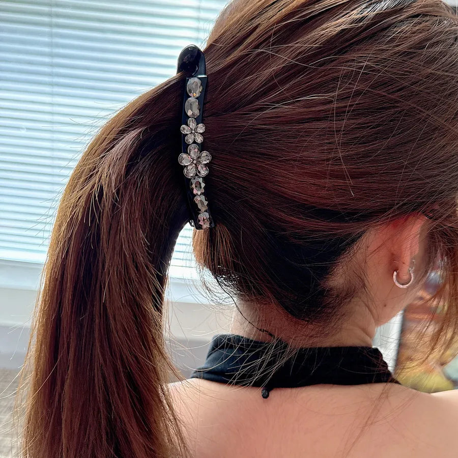 Elegant Full Drill Flower Vertical Clip Banana Clip New Hair Accessories High-End Rhinestone Tail Clip Hair Clip Stylish Hairpin