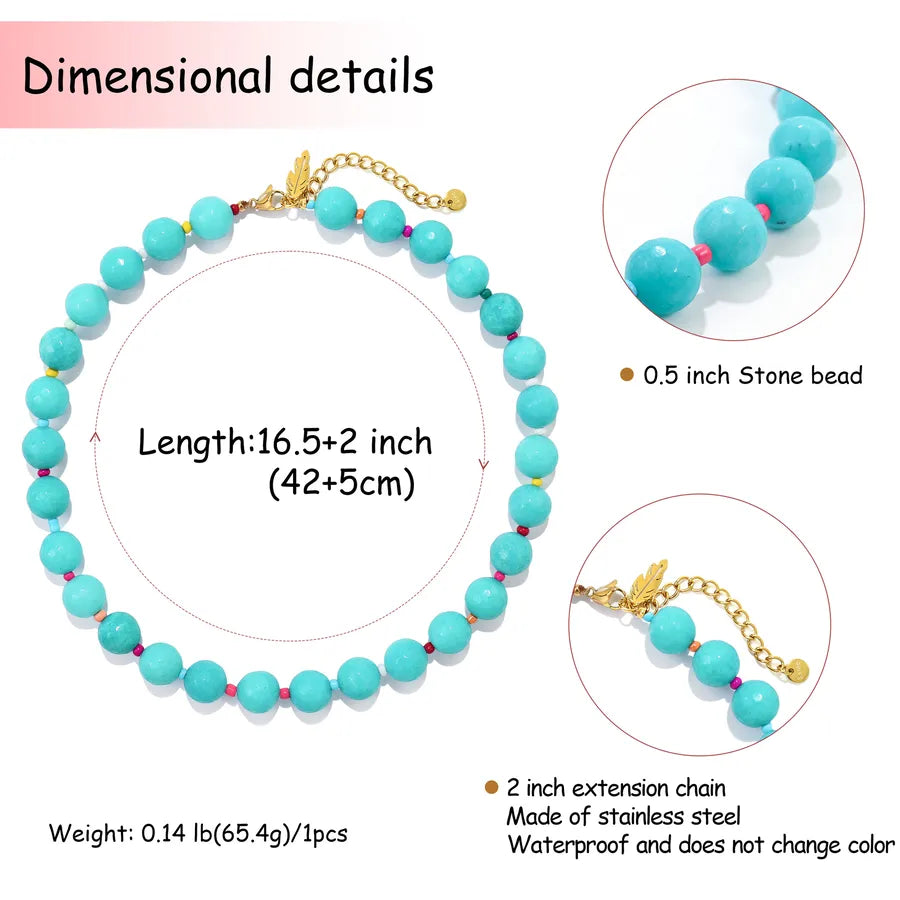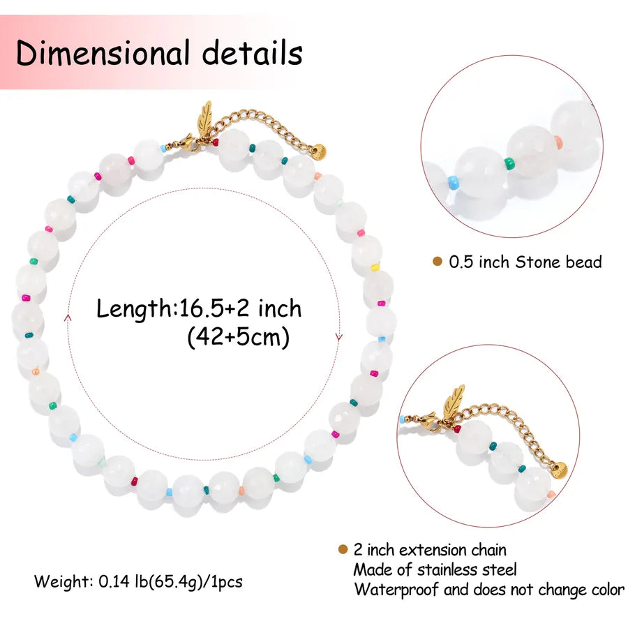 Elegant Geometric 304 Stainless Steel natural stone Beaded Chain Necklace In Bulk