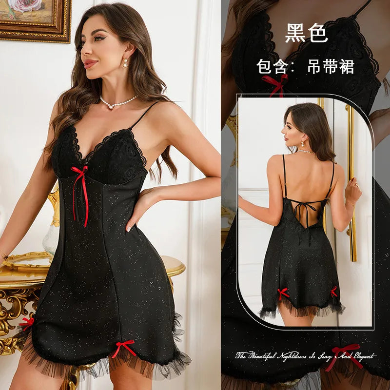 Elegant Hollow Out Lace Chemise Nightgown Sexy Style Home Clothes Underwear For Women Breathable Summer