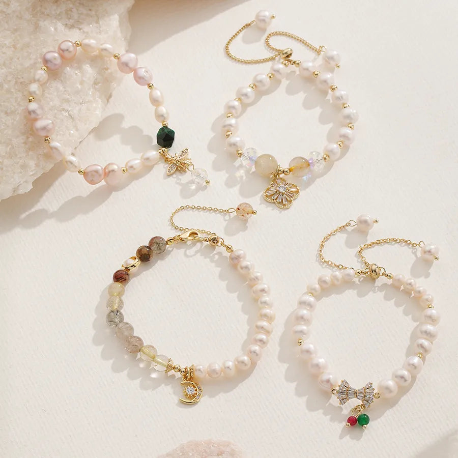 Elegant Luxurious Geometric natural stone Freshwater Pearl Copper Zircon Bracelets In Bulk