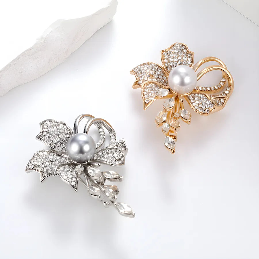 Elegant Pearl Alloy Flower Brooch Pin Women's Personality Design Lapel Pin Cute Romantic Animal Floral Pattern Office Selfie Suitable All Seasons