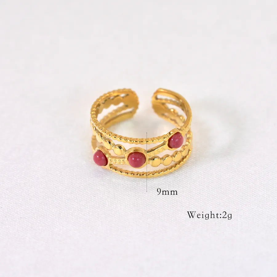 Elegant Retro Geometric Titanium Steel Natural Stone Open Rings In Bulk
