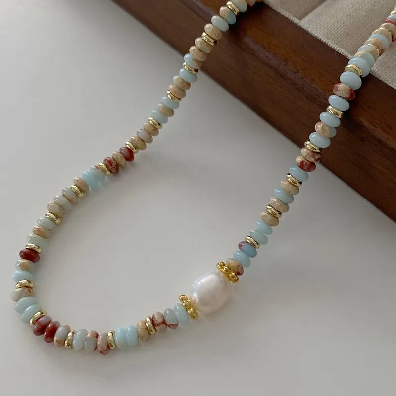 Elegant Retro Printing Beaded natural stone Freshwater Pearl Necklace In Bulk