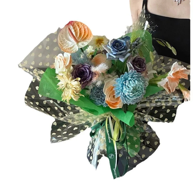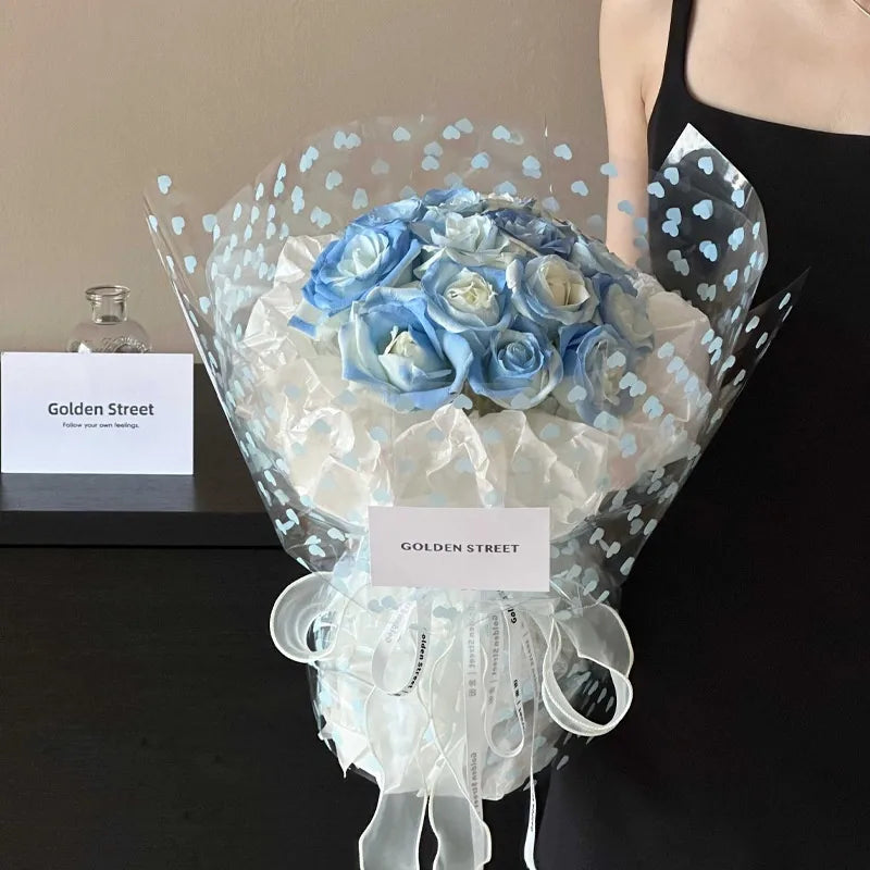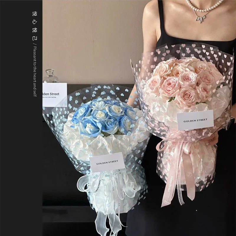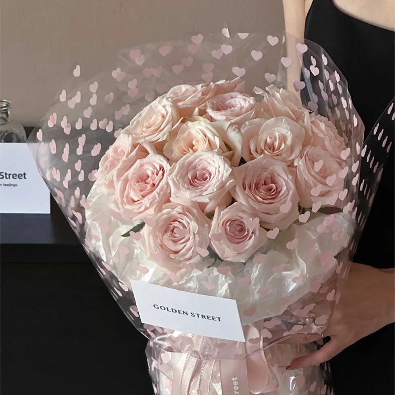 Elegant Romantic Heart Shape Plastic Daily Date Korean Floral Wrapping Paper Party Supplies Gift Wrapping Supplies 1 Pack of 20 Sheets