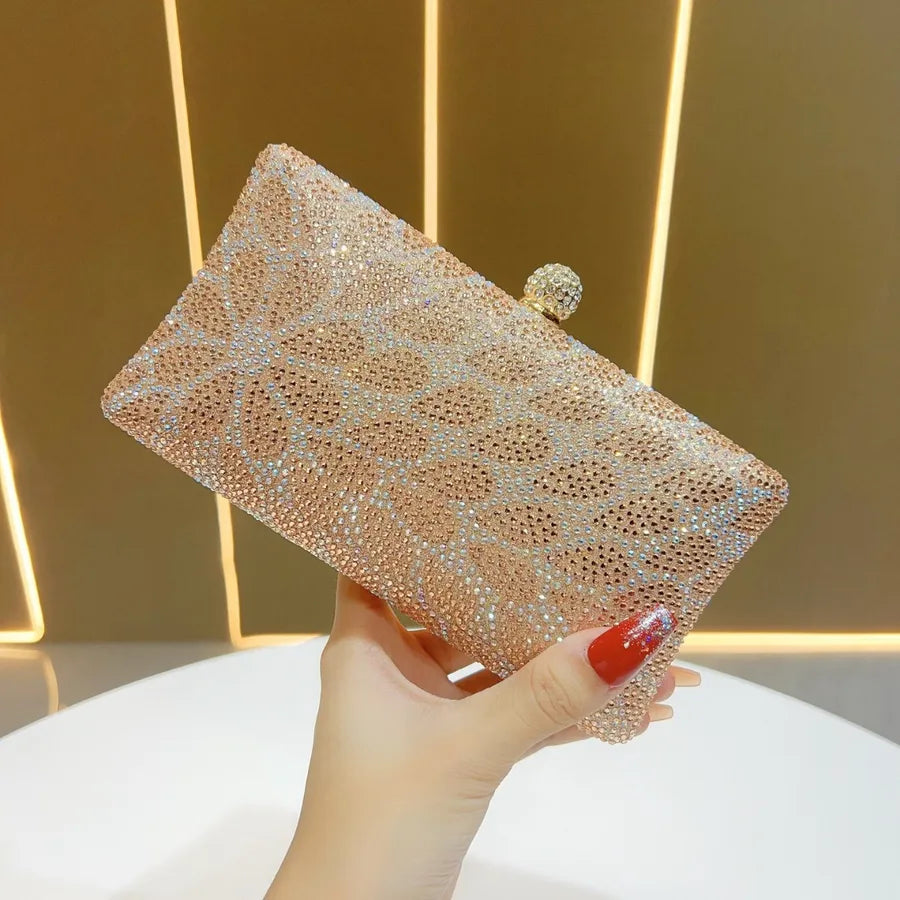 Elegant Shiny Rhinestone Evening Bag Fashionable Clutch Handbag Ladies Glittering Diamond High-End Sensation Square Polyester Box Bag