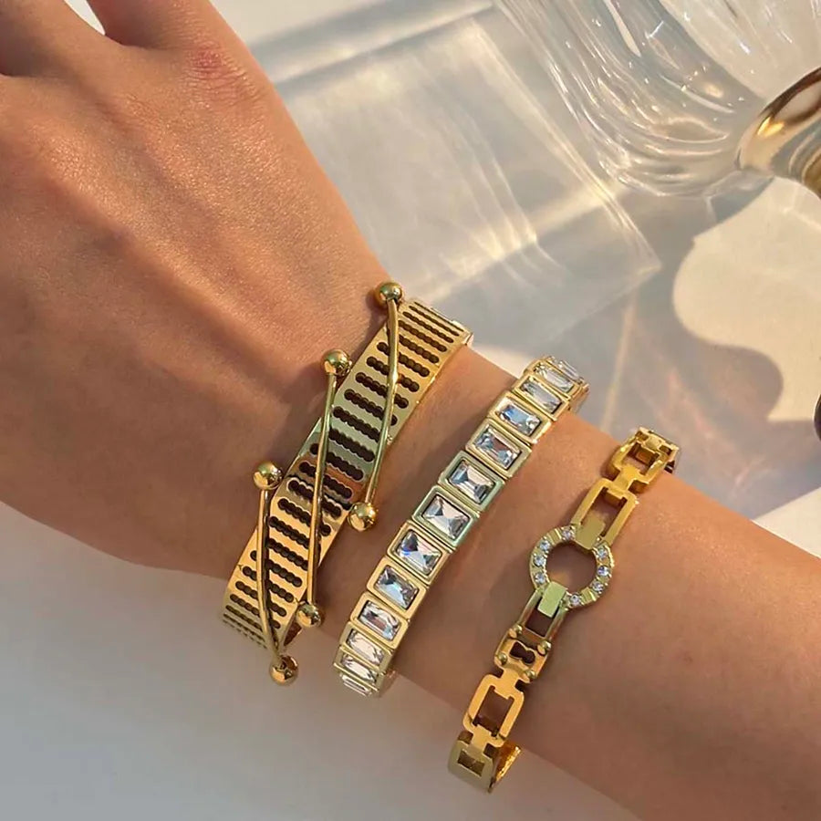 Elegant Simple Style Classic Style Geometric Solid Color 304 Stainless Steel 18K Gold Plated Bangle In Bulk