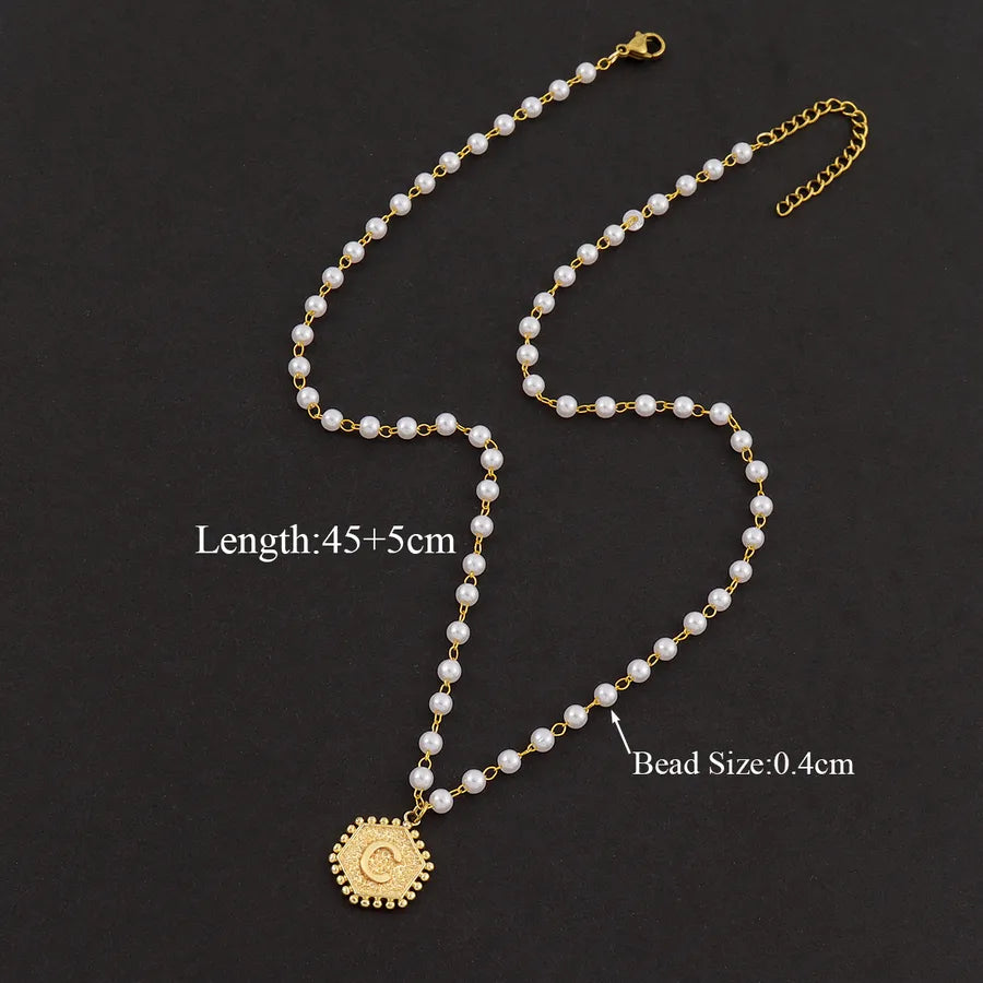 Elegant Simple Style Classic Style Hexagon Letter 304 Stainless Steel Imitation Pearl Beaded Necklaces Wholesale