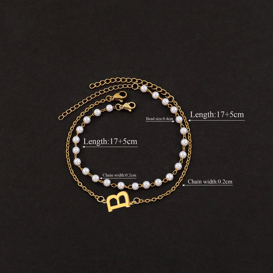 Elegant Simple Style Classic Style Letter 201 Stainless Steel 304 Stainless Steel Imitation Pearl Beaded Chain cable chain Beaded Bracelets Wholesale