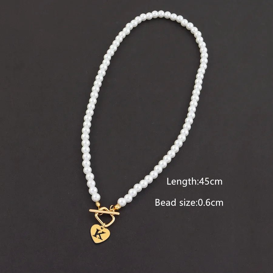 Elegant Simple Style Classic Style Letter Heart Shape Rectangle 304 Stainless Steel Artificial Pearl Beaded Chain Beaded Necklaces Wholesale
