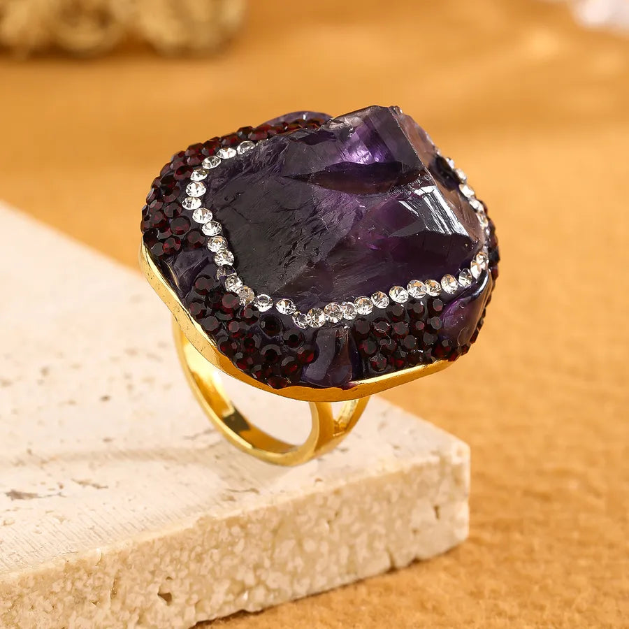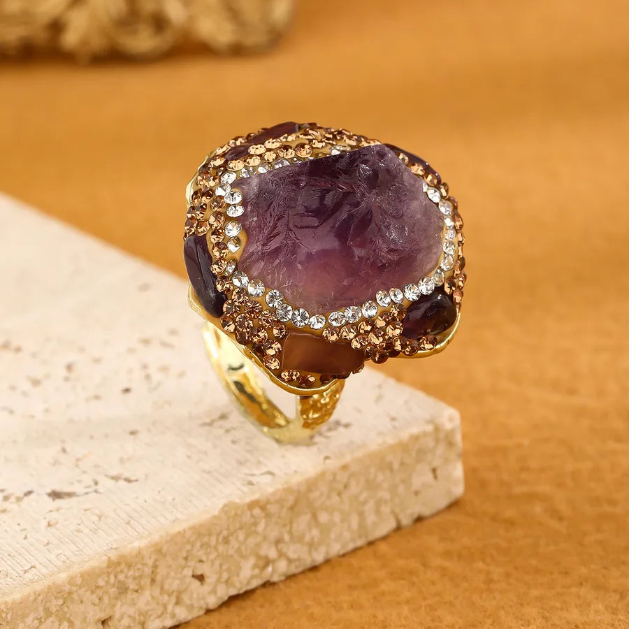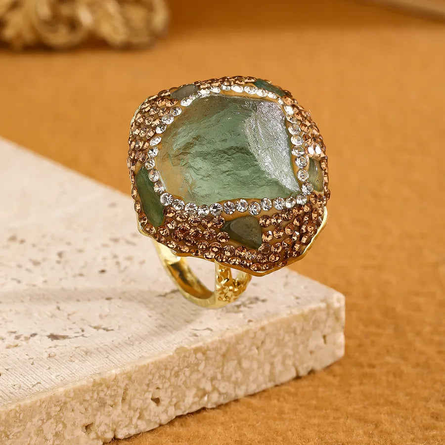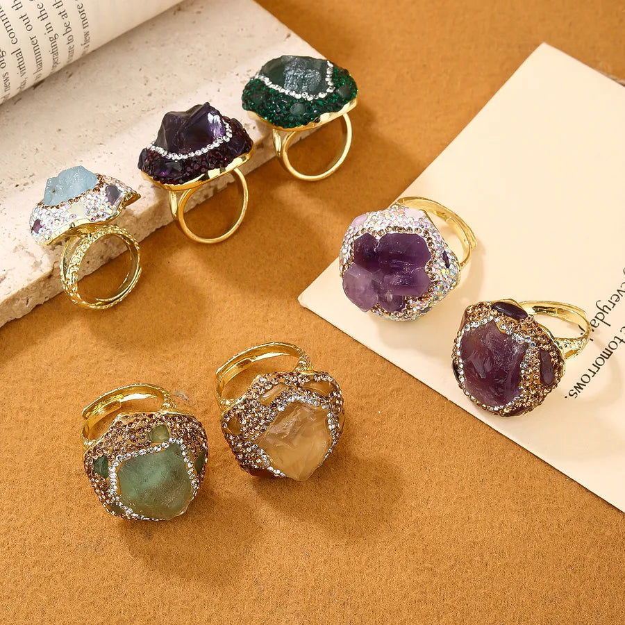 Elegant Vacation Handmade Irregular natural stone Crystal Copper Asymmetrical Irregular Natural Stone Crystal 14K Gold Plated Women's Open Rings