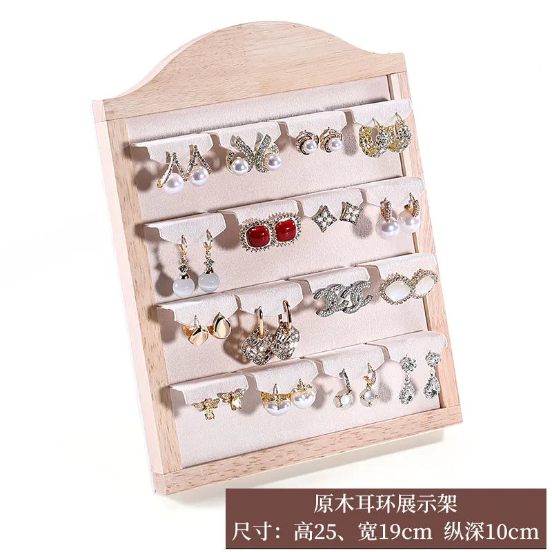 Elegant Velvet Stand Earring Display Ring Holder Luxury Jewelry Accessories Organizer Vertical Style Wooden Material Premium Feel