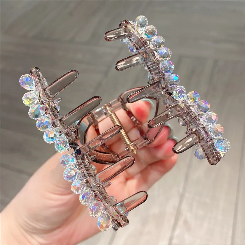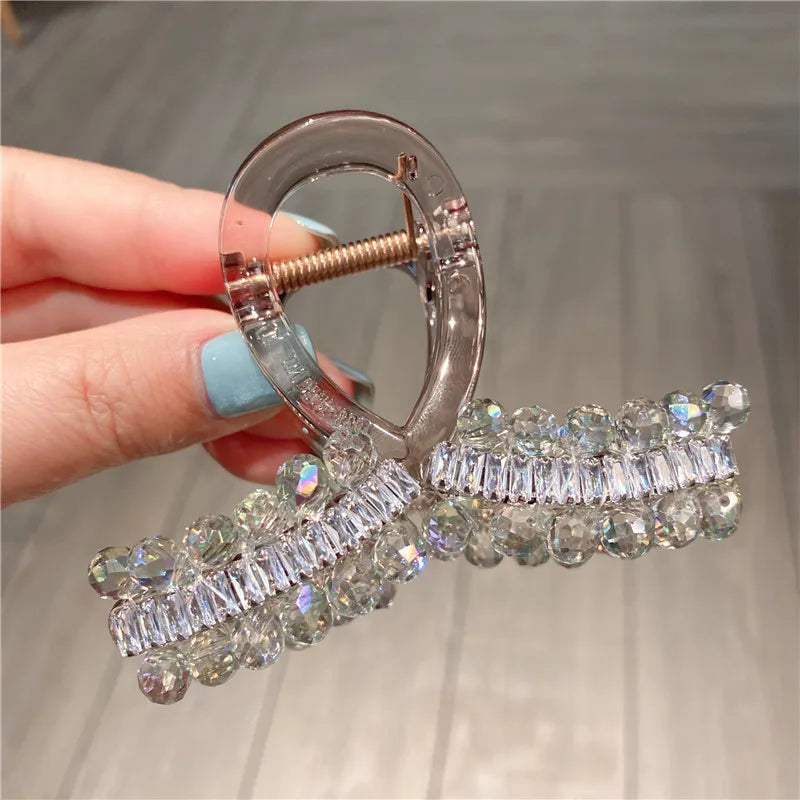 Elegant Vintage Heavy Work Crystal Full Drill Hair Clip Medium Shark Clamp Secure Updo Hair Accessories Trendy Sweet Headwear