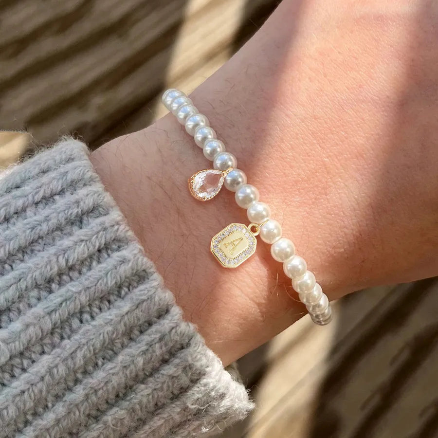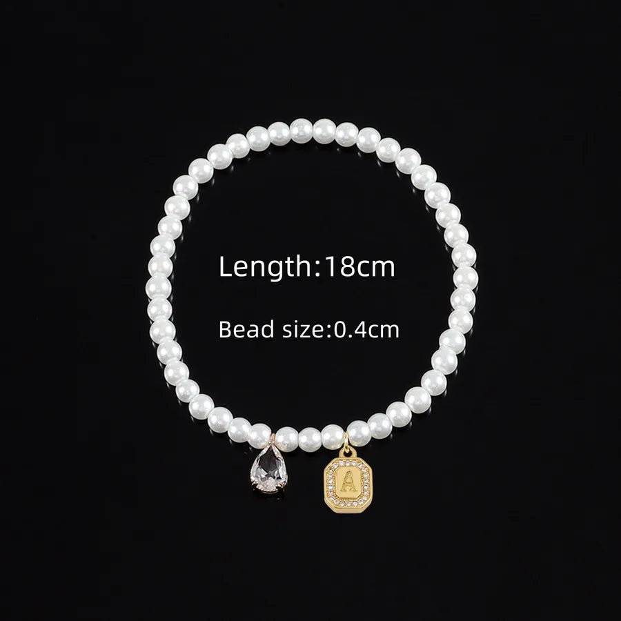 Elegant Vintage Style Classic Style Letter Water Droplets Rectangle Artificial Crystal Artificial Pearl Copper Beaded Chain Beaded Bracelets Wholesale