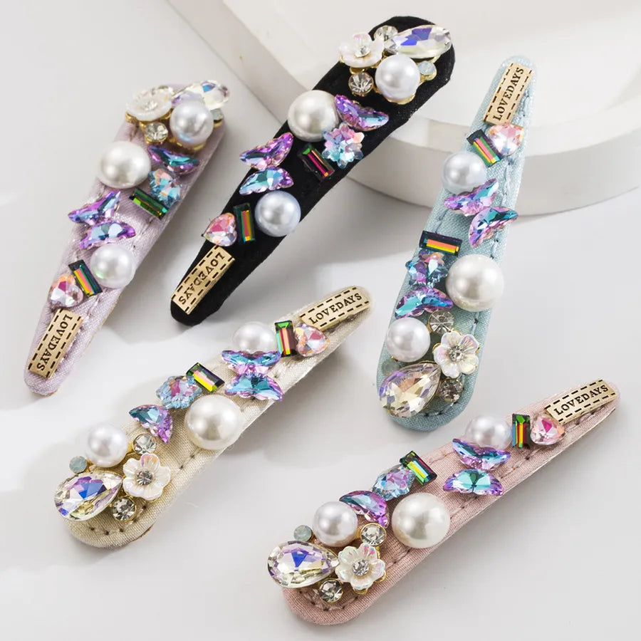 Elegant Women's Flower Butterfly Alloy Inlay Artificial Pearls Rhinestones Hair Clip