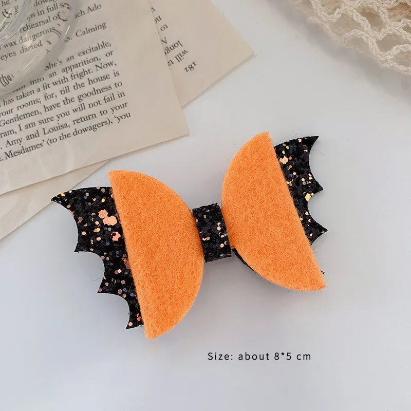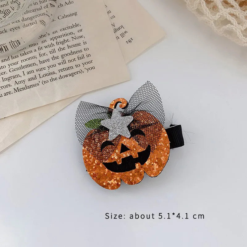 exaggerated funny halloween pattern pumpkin bow knot alloy cloth hair clip