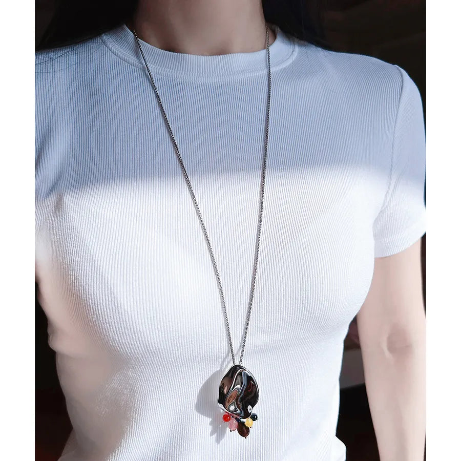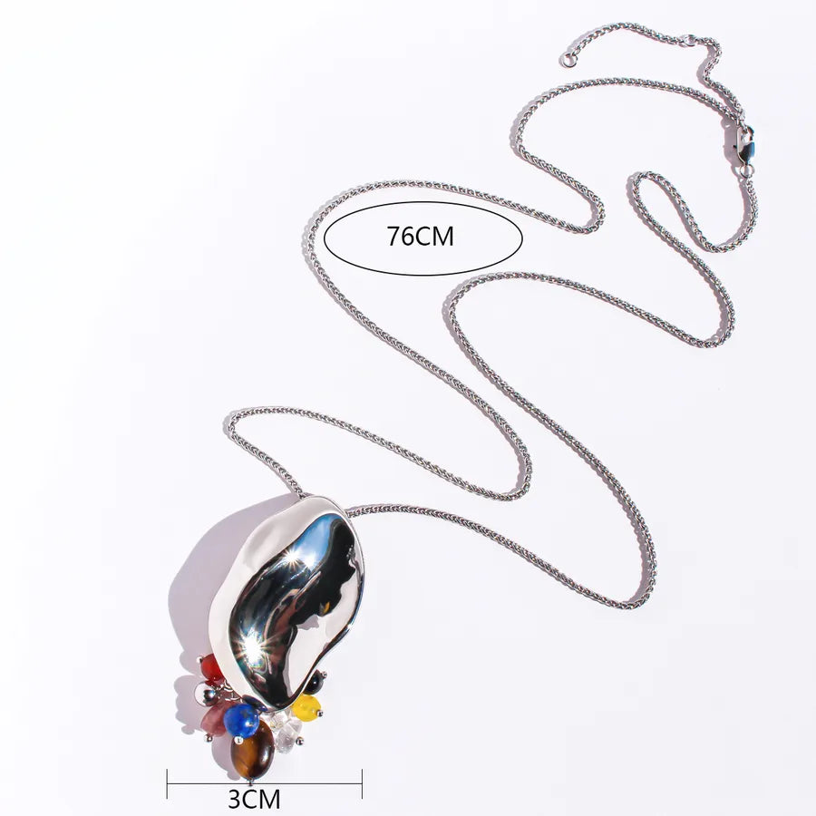 Exaggerated Leaf Oval natural stone Tiger Eye Brass 24K Gold Plated Natural Stone None Sweater Chain In Bulk