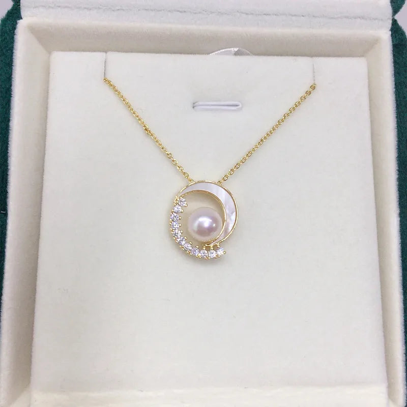 Exquisite K Gold Craft Natural Freshwater Pearl Necklace Natural Sea Shell Fritillaria Star Moon Pearl Pendant Live Wholesale