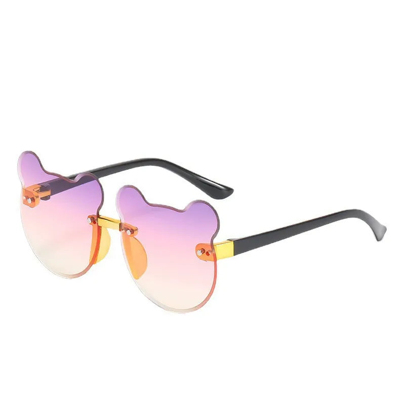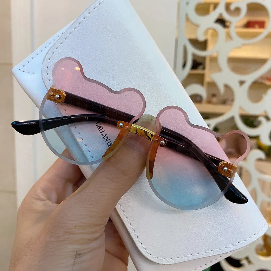 Fashion Cartoon Bear Children's Rimless Sunglasses with Colorful Gradient Cat Ear Design Cute Frameless Sunglasses