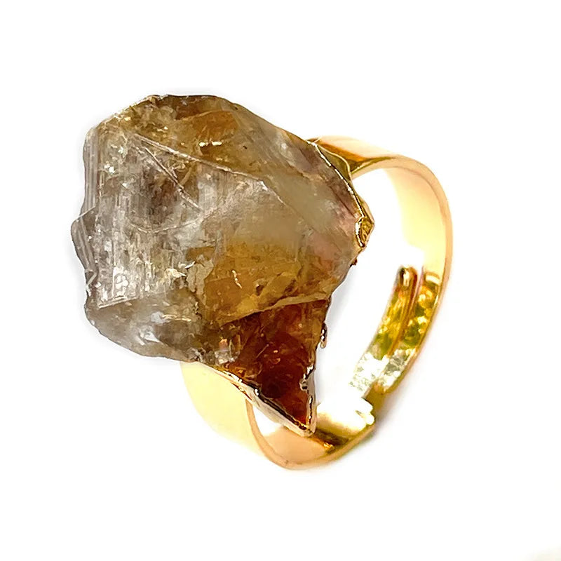 fashion geometric crystal asymmetrical plating inlay natural stone open ring 1 piece