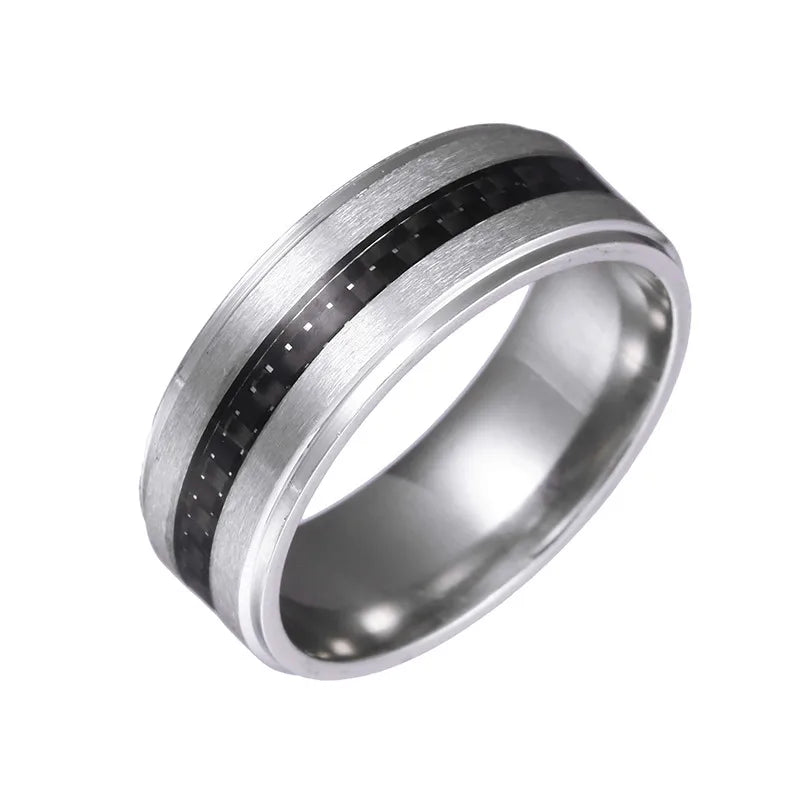 Fashionable Narrow Surface Stainless Steel Carbon Fiber Ring Elegant Jewelry Accessory For E-commerce Platforms