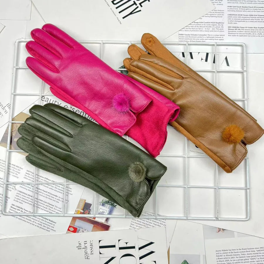 Fashionable PU Velvet Touchscreen Gloves For Women Elegant Business Style Autumn Winter Warm Driving Cycling Outdoor Gloves