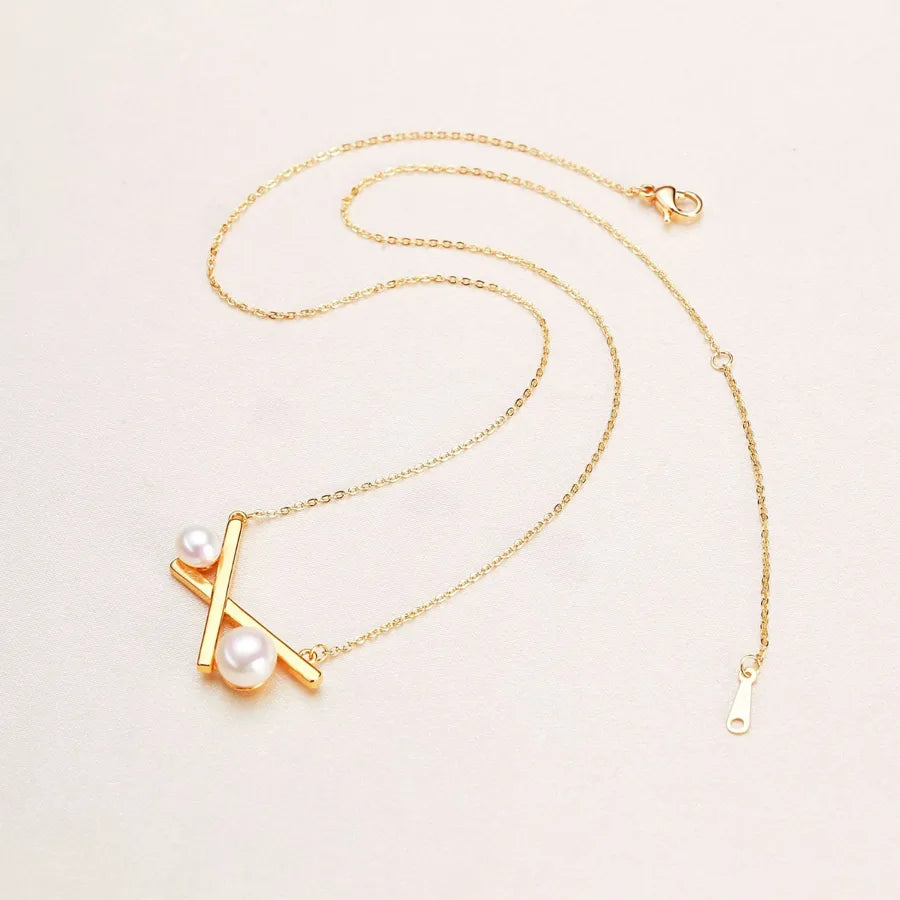 Freshwater Pearl Copper Alloy cable chain cross Necklace
