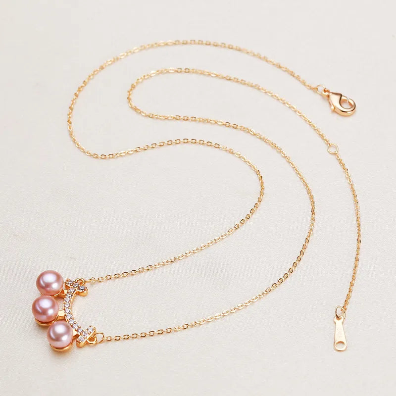 Freshwater Pearl Copper Alloy Zircon cable chain Plating Inlay Geometric Necklace