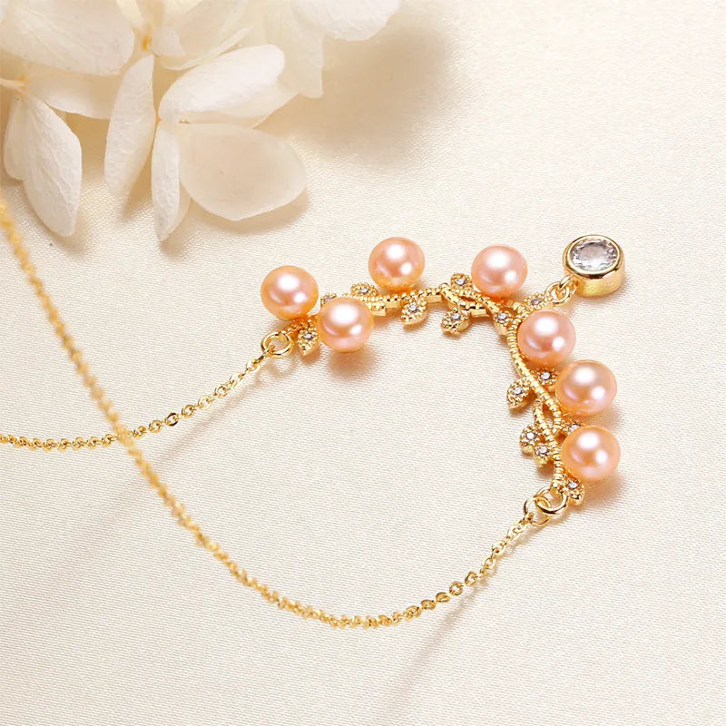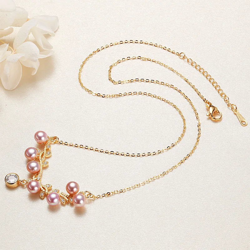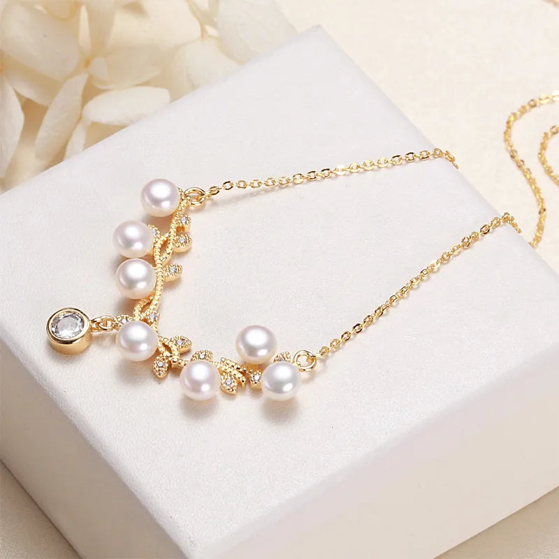 Freshwater Pearl Copper cable chain Geometric Pendant Necklace
