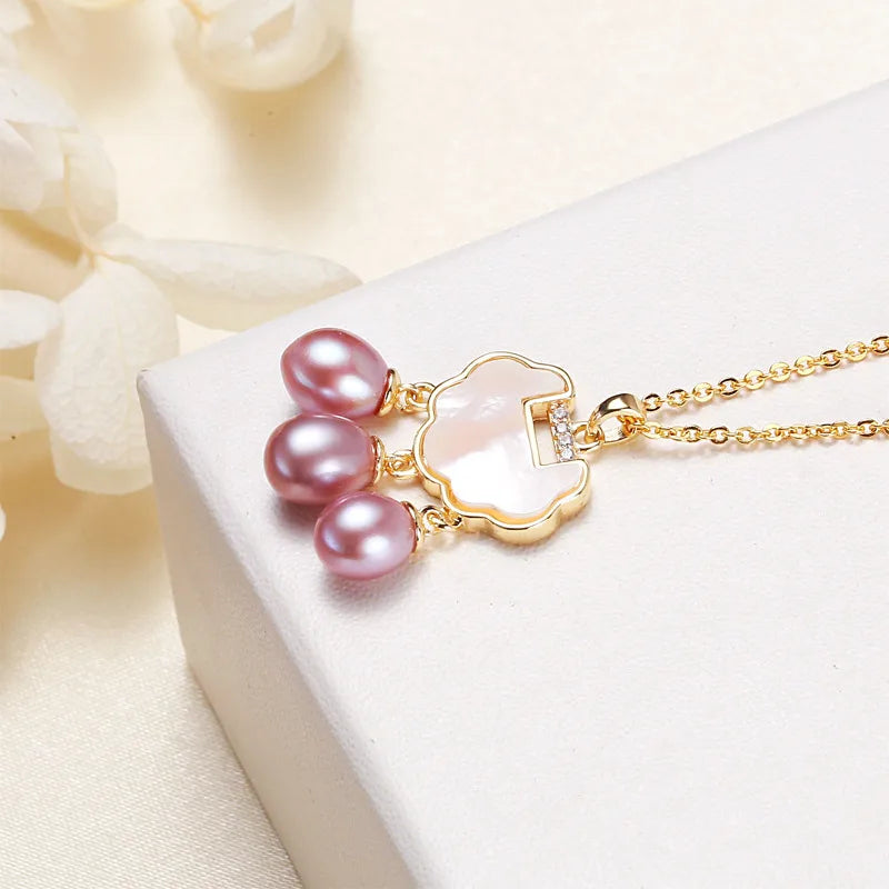 Freshwater Pearl Copper cable chain Geometric Pendant Necklace