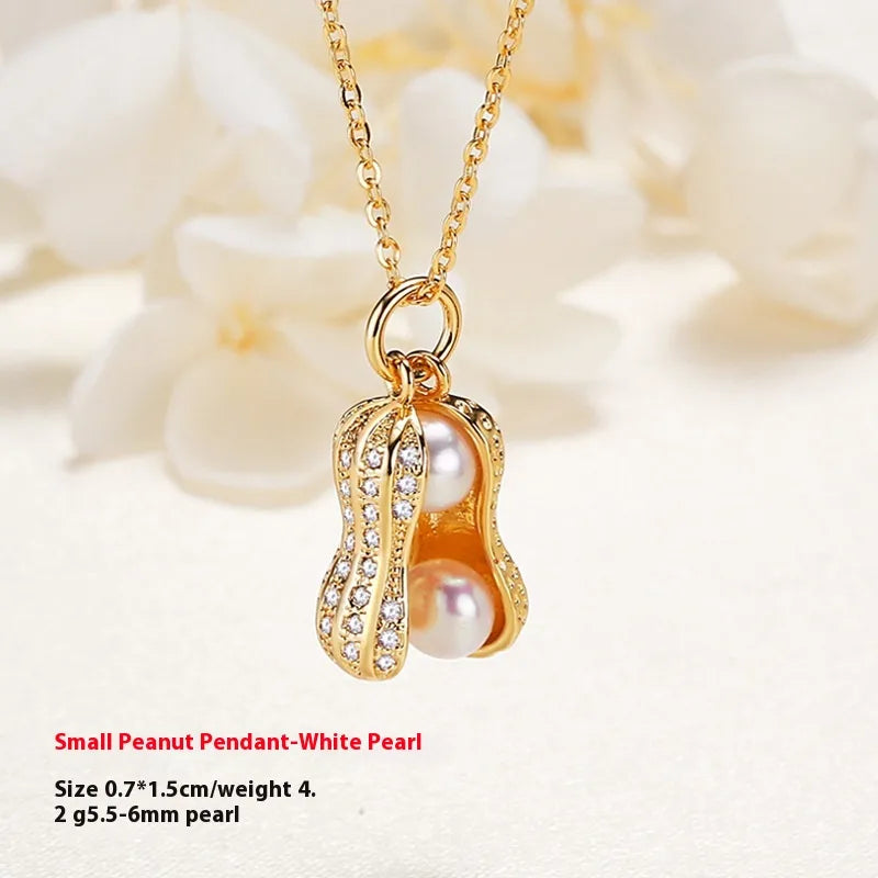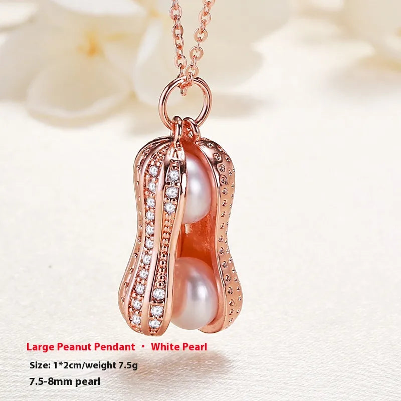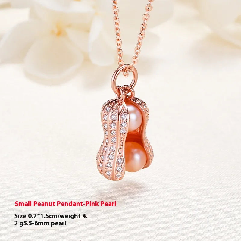 Freshwater Pearl Copper cable chain Peanut Pendant Necklace