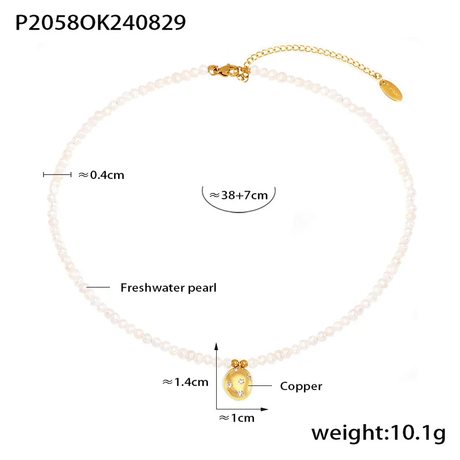 Freshwater Pearl Copper Plated Rhinestones Inlay Geometric Pendant Necklace
