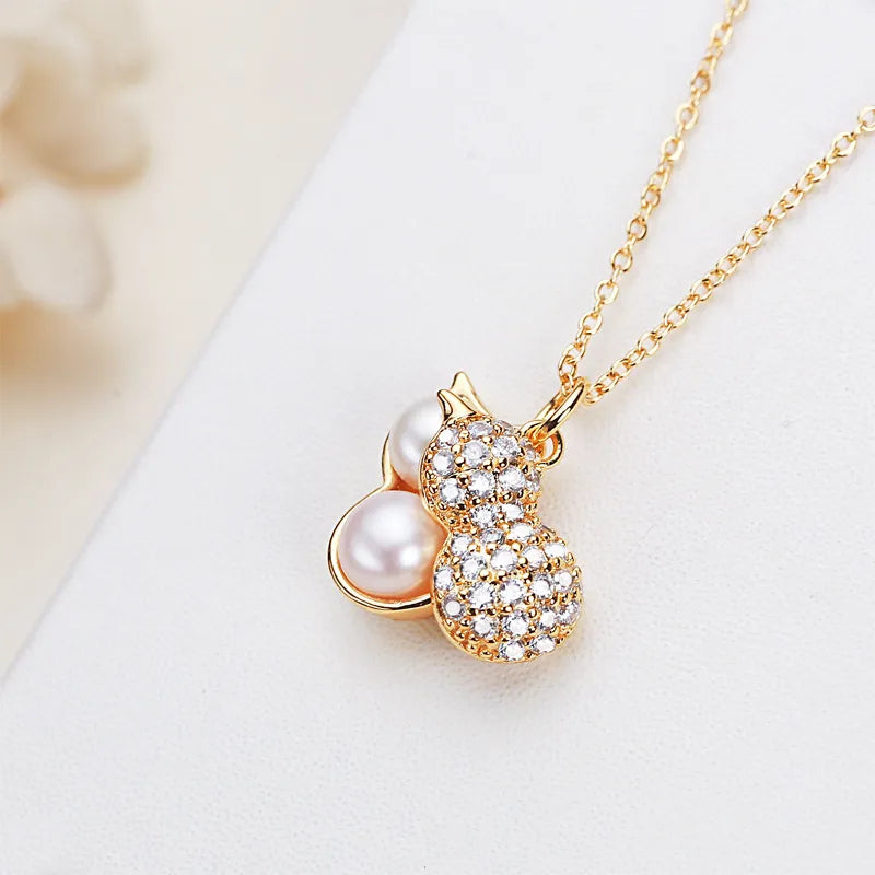 Freshwater Pearl Copper Zircon cable chain Plating Inlay Gourd Necklace
