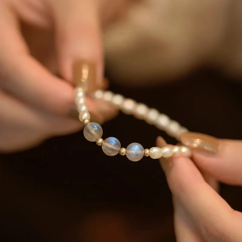 Freshwater Pearl Mixed materials Rose Quartz Beaded Bracelets