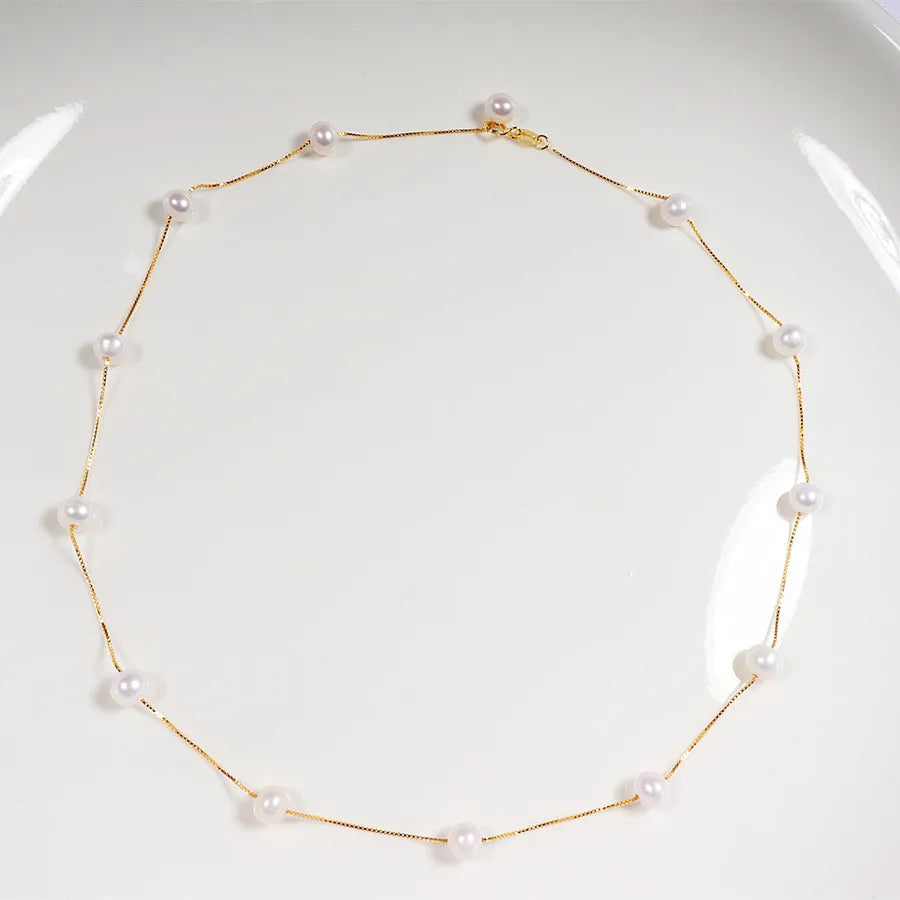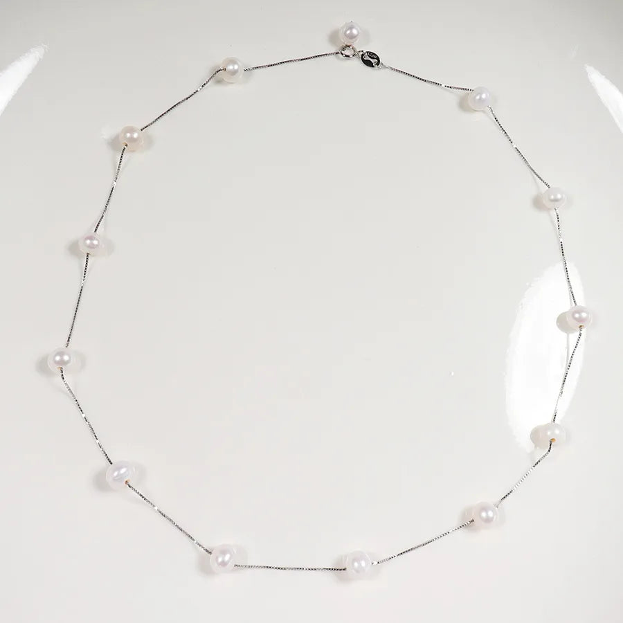 Freshwater Pearl Sterling Silver Beaded Round Necklace