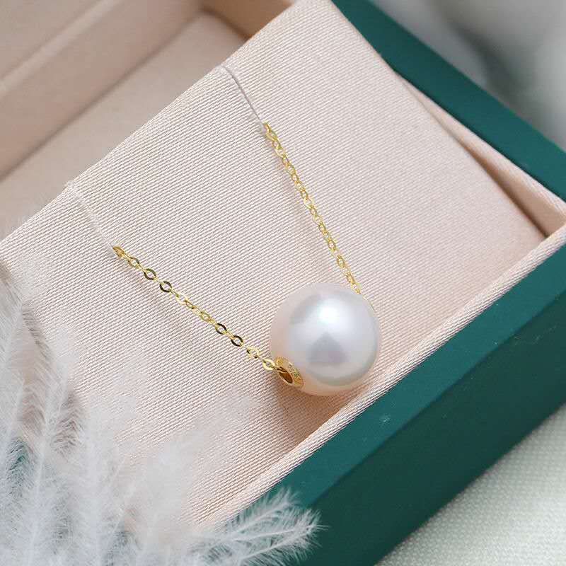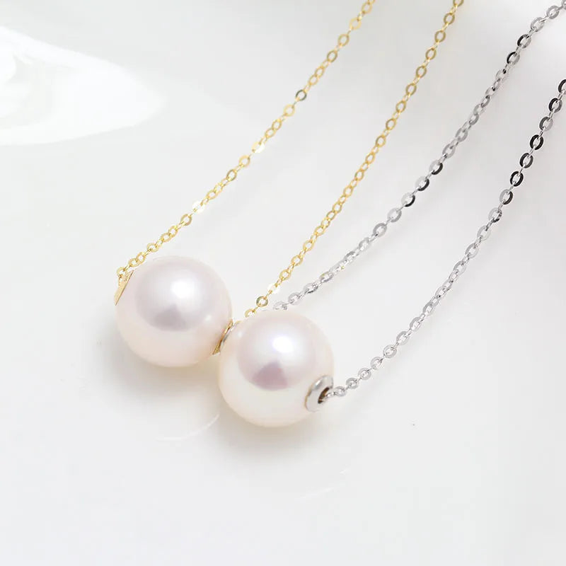 Freshwater Pearl Sterling Silver cable chain Solid Color Necklace