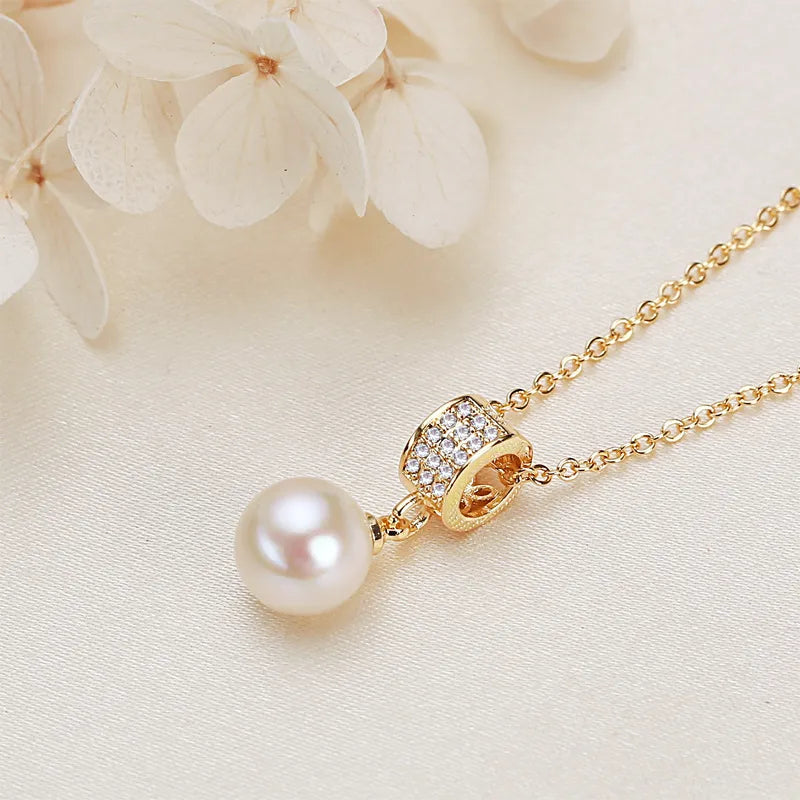 Freshwater Pearl Zircon cable chain Plating Inlay Round Necklace
