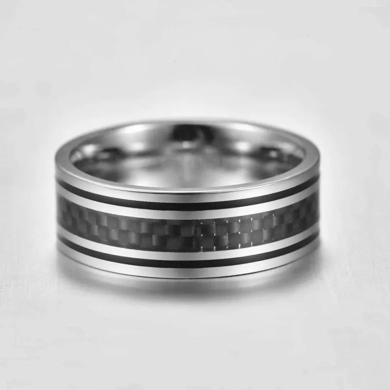 Gaben Fashion Creative Silver Carbon Fiber Double Drop Oil Ring Jewelry Stainless Steel Street Style For E-commerce