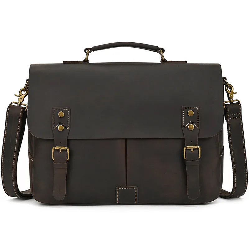 Genuine Mad Horse Leather Briefcase Single Shoulder Crossbody Bag Top Layer Cowhide Commuter Business Bag 14 Inch Laptop Bag