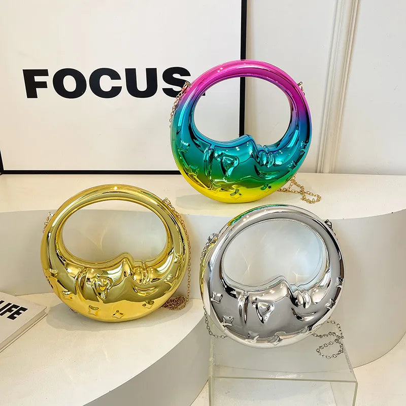 Gold Silver colour Arylic Moon Solid Color Dumpling Shape Evening Bags