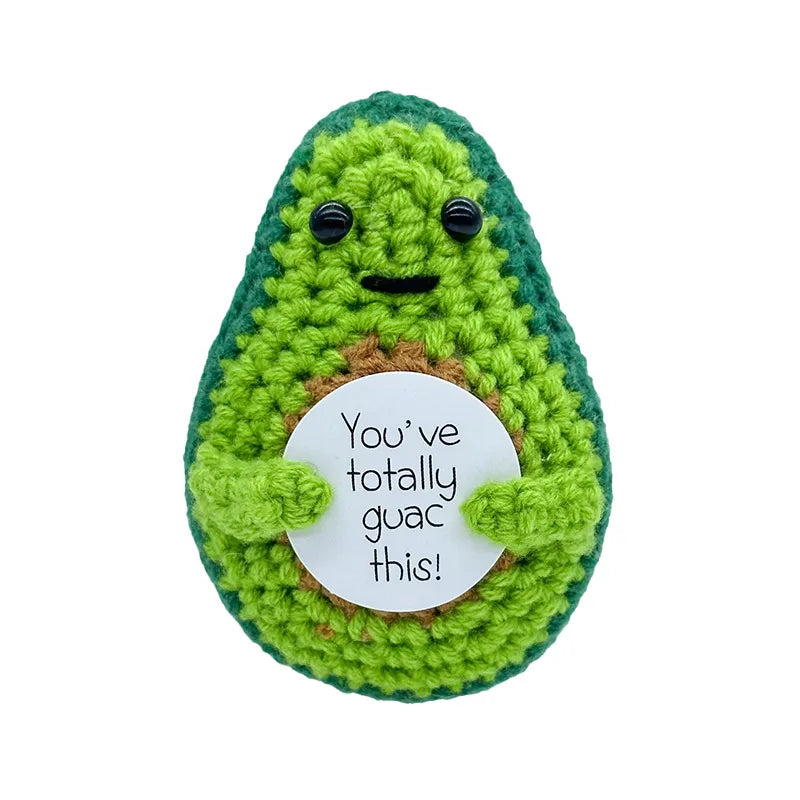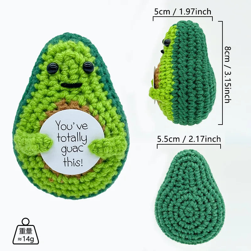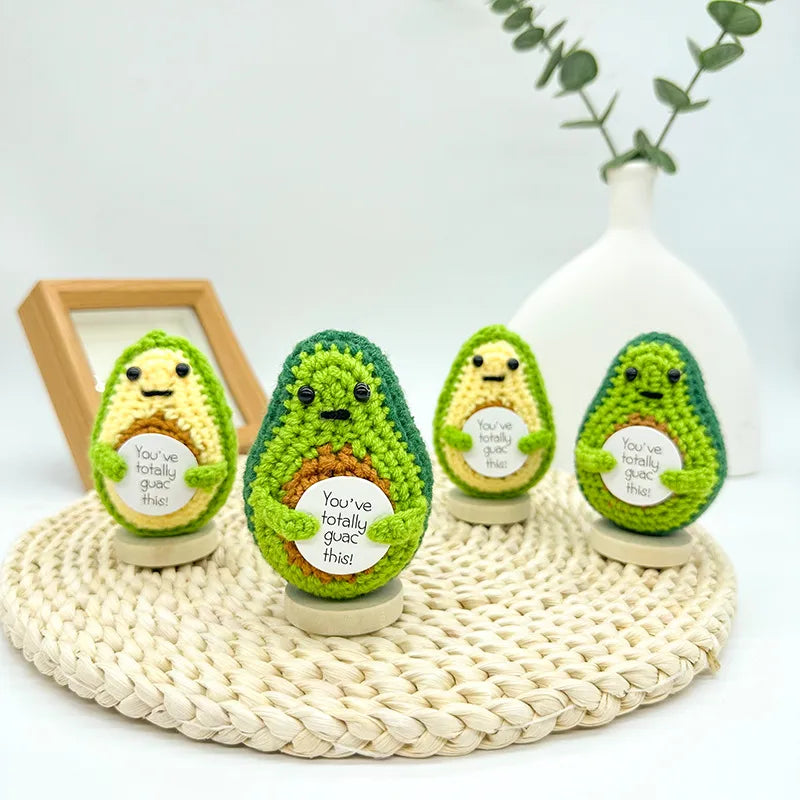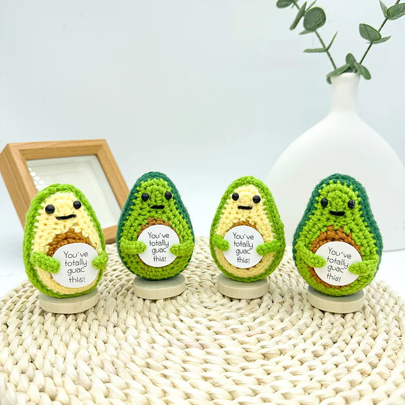 Hand Knitted Avocado Doll Finished Product Yarn Woven Motivational Card Desktop Decoration Toy Plush Material Gift